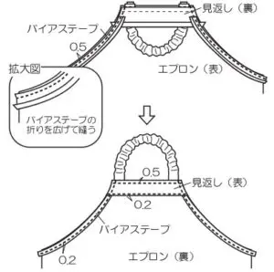 2.上端を縫う(エプロンの作り方⑥を参照)