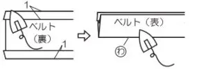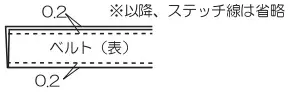 ③三つ折りを戻してベルトを挟み、0.8cmでステッチする。