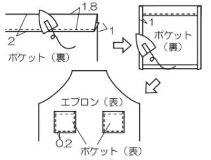 4.両脇と下端を縫う。(エプロンの作り方⑥参照)