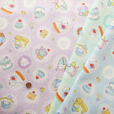 コットンオックスプリント生地 みいるかスイーツ(表布Aに使用)