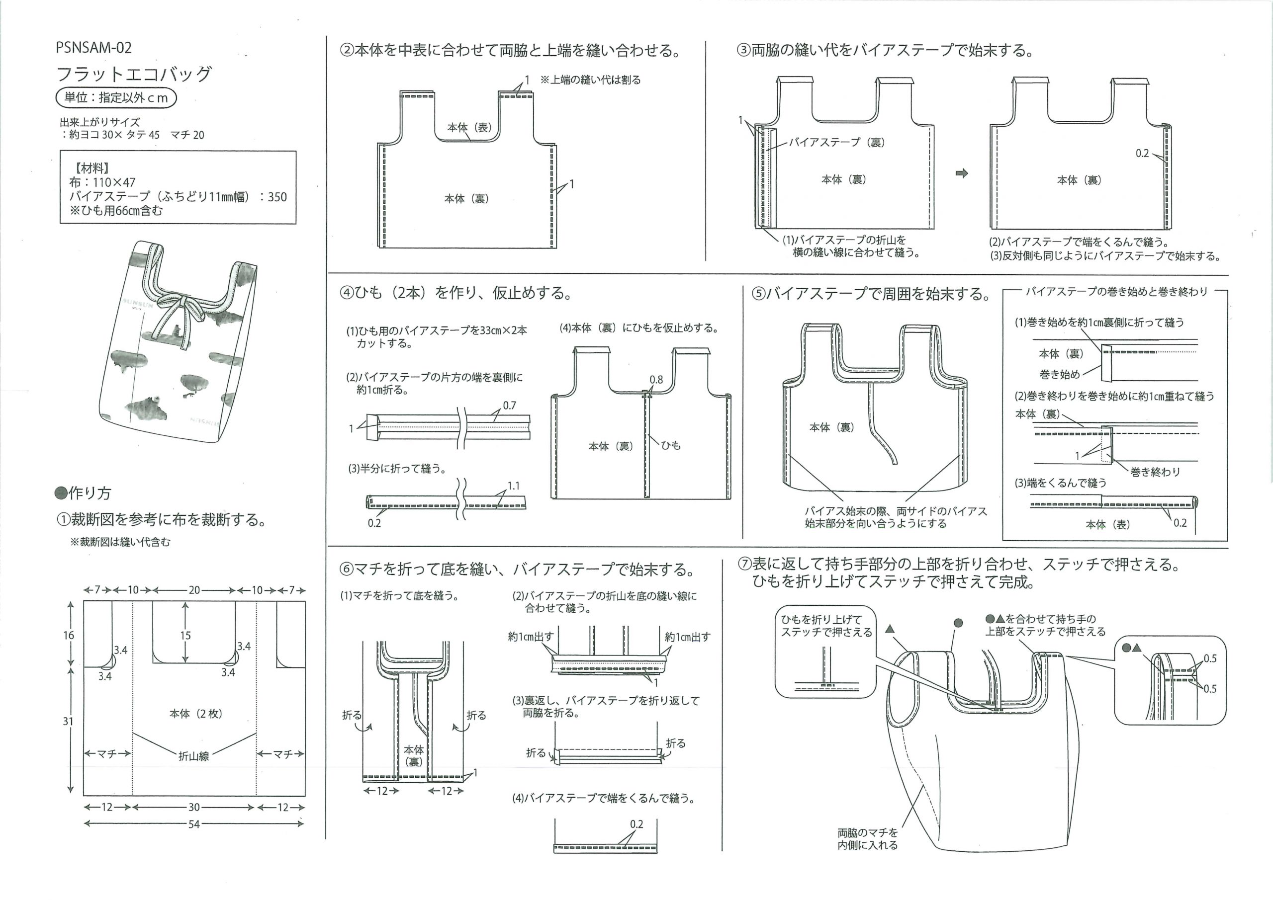 HOME > お役立ち情報・お知らせ・無料レシピ/作り方 > 無料レシピ/作り方 > 作り方講座 > レシピ付き > 【作り方・レシピ付き】フラットエコバッグ
