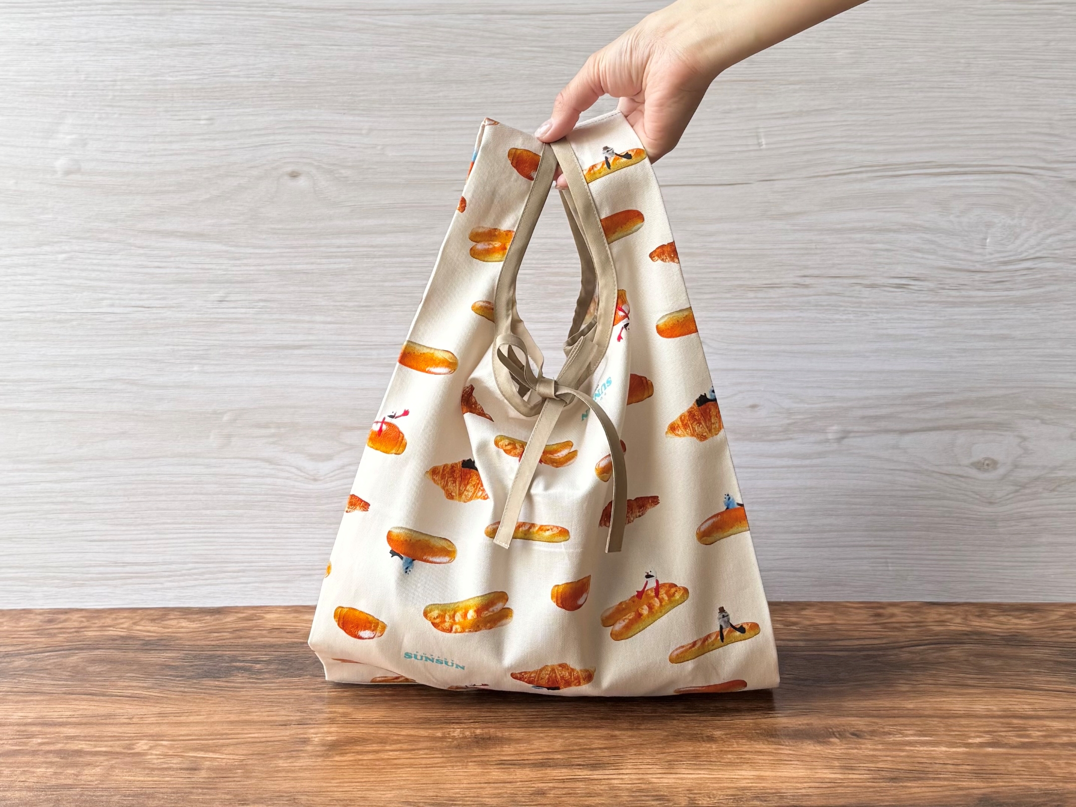 スンスンの生地で仕立てたフラットエコバッグです♪