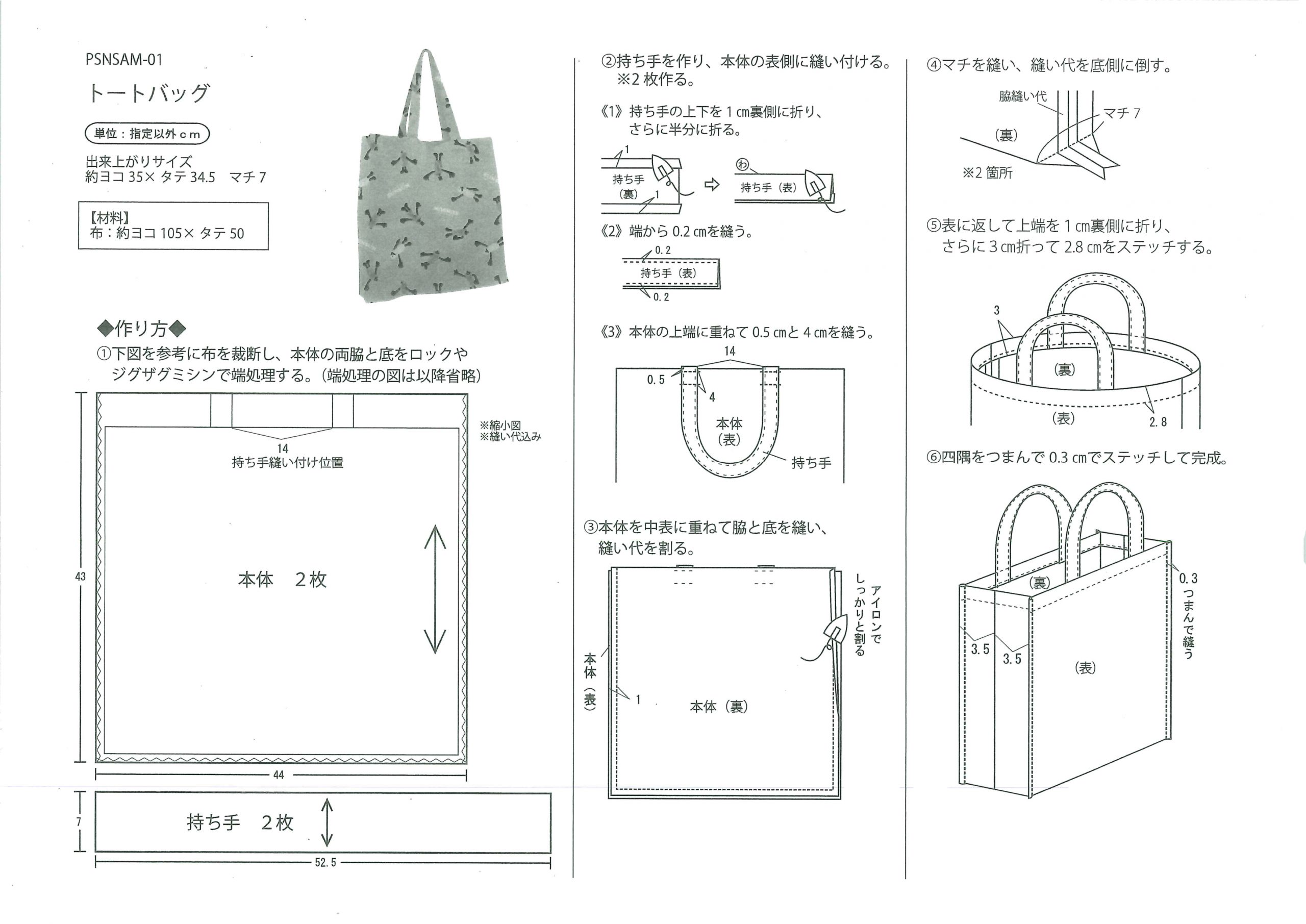 HOME > お役立ち情報・お知らせ・無料レシピ/作り方 > 無料レシピ/作り方 > 作り方講座 > レシピ付き > 【作り方・レシピ付き】トートバッグ