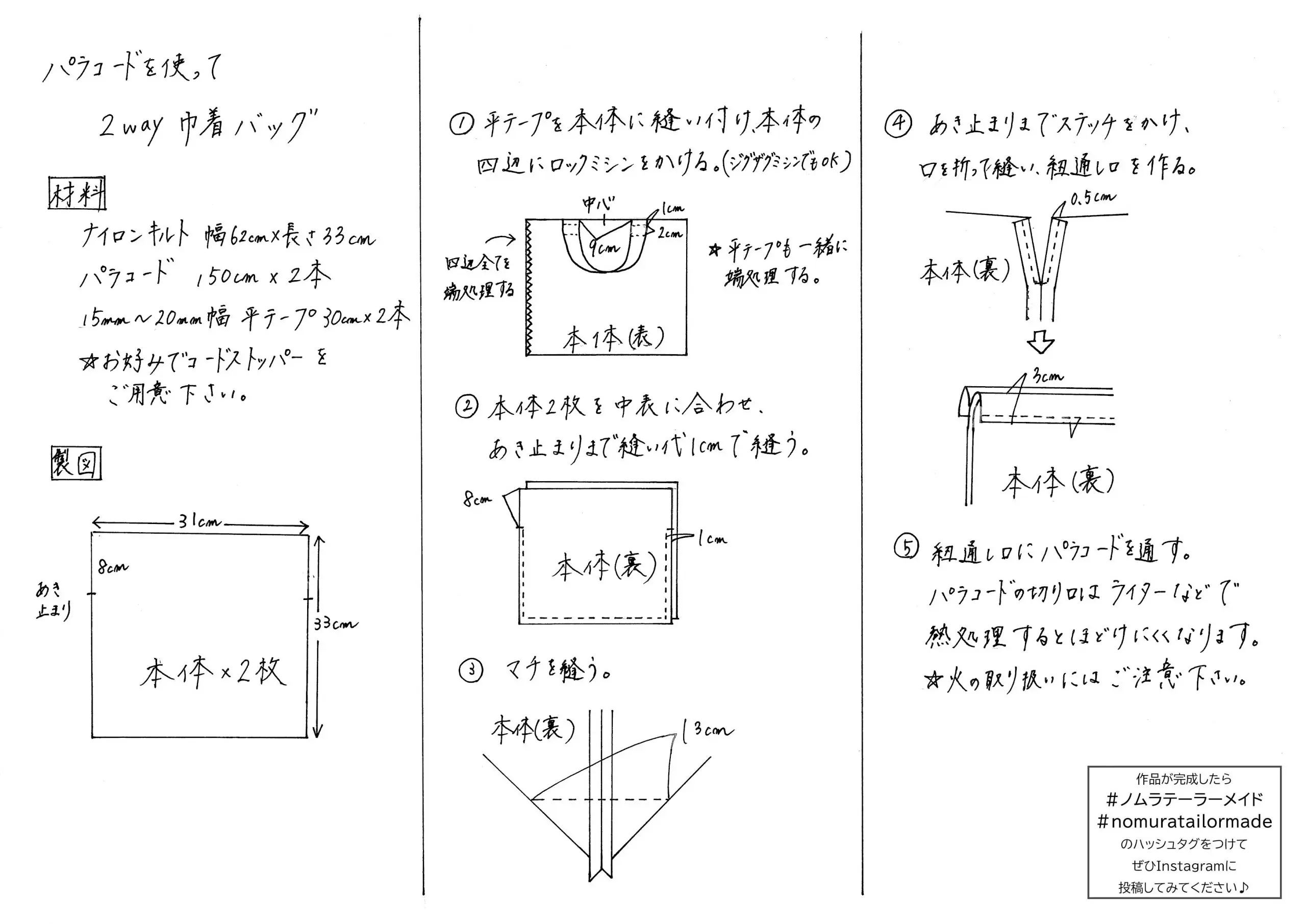 【作り方・レシピ付き】ナイロンキルトを使った巾着バッグ