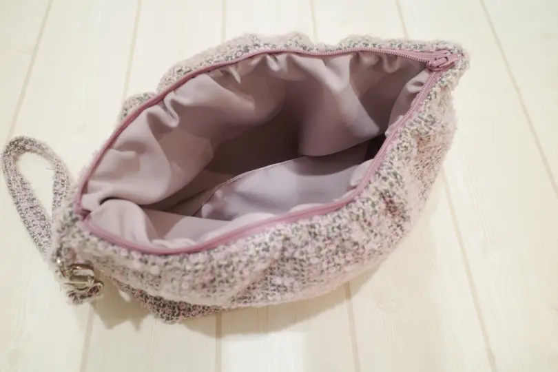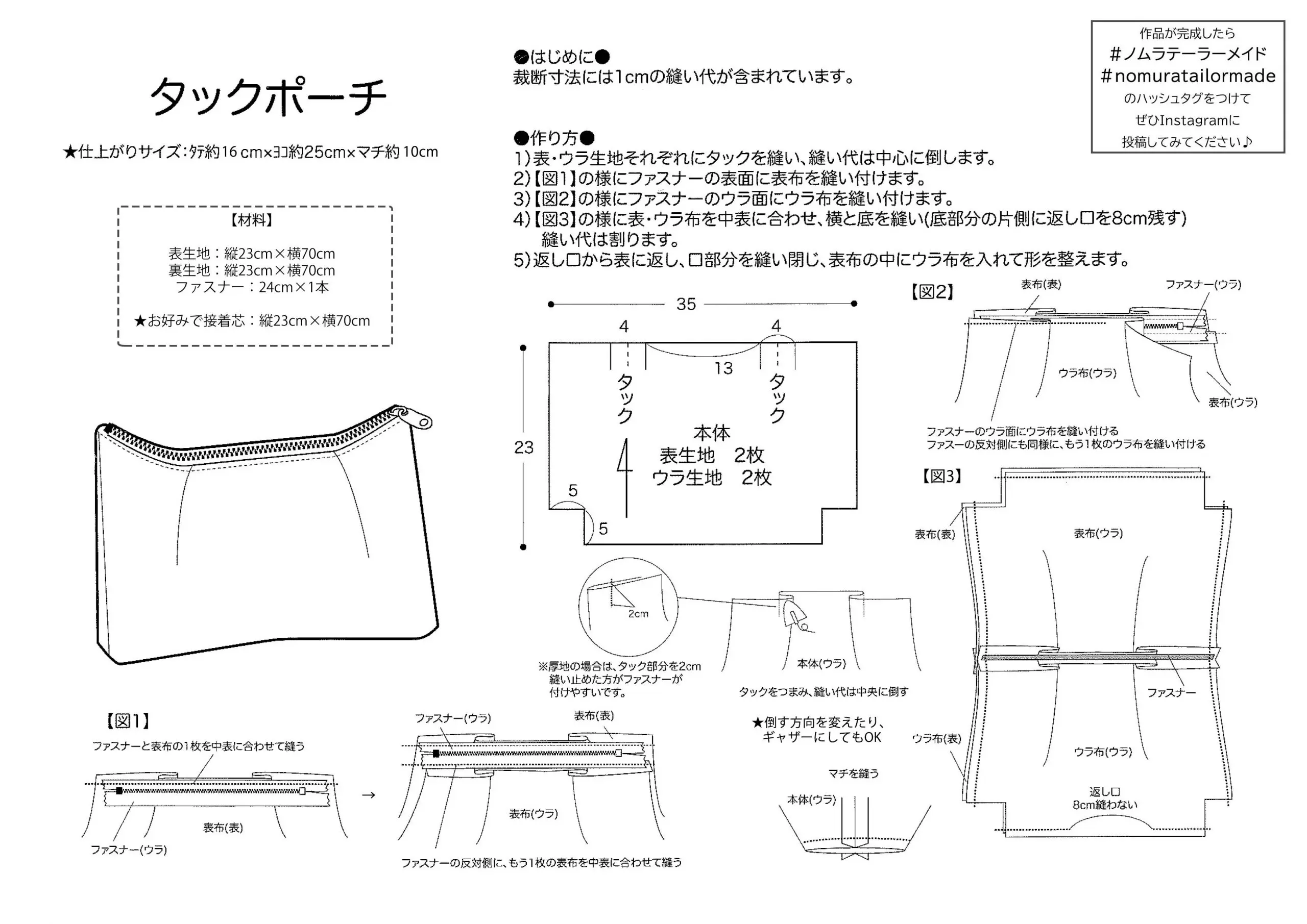 通常のポーチにタックを入れるだけでグッとおしゃれさが増します✨