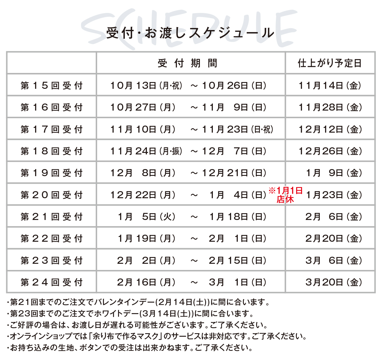 ※オンラインショップでの受付期間は日程が異なります。オンラインショップの商品ページをご確認ください。