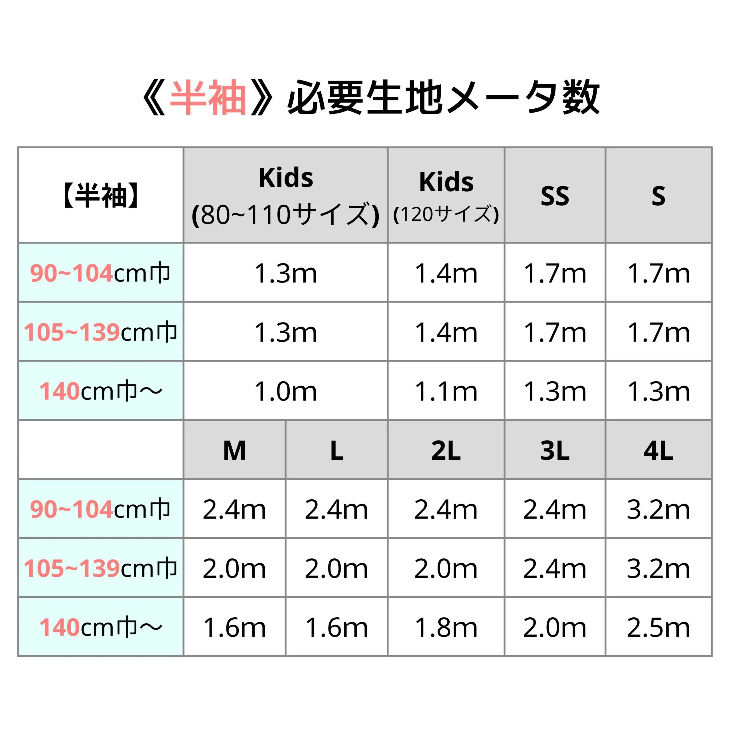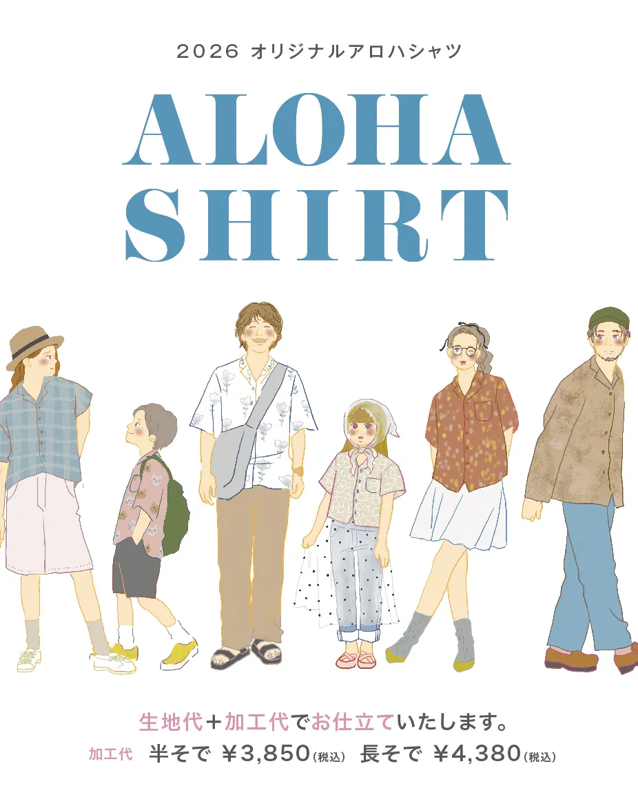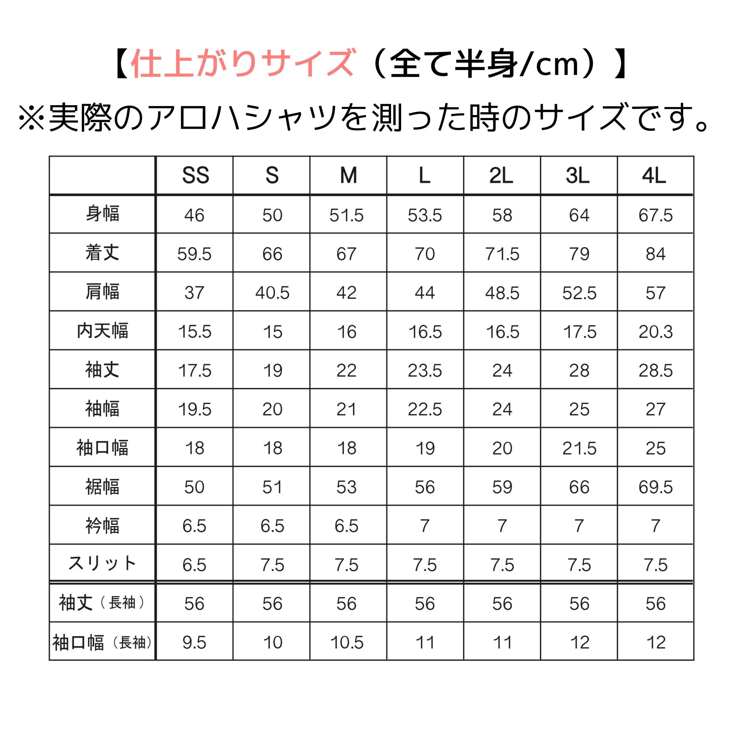 下記サイズ分の生地代+加工代が1着のアロハシャツを作る合計金額となります。