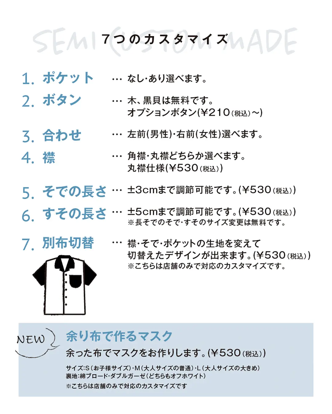 ※「別布切替」は店舗のみで対応のカスタマイズです