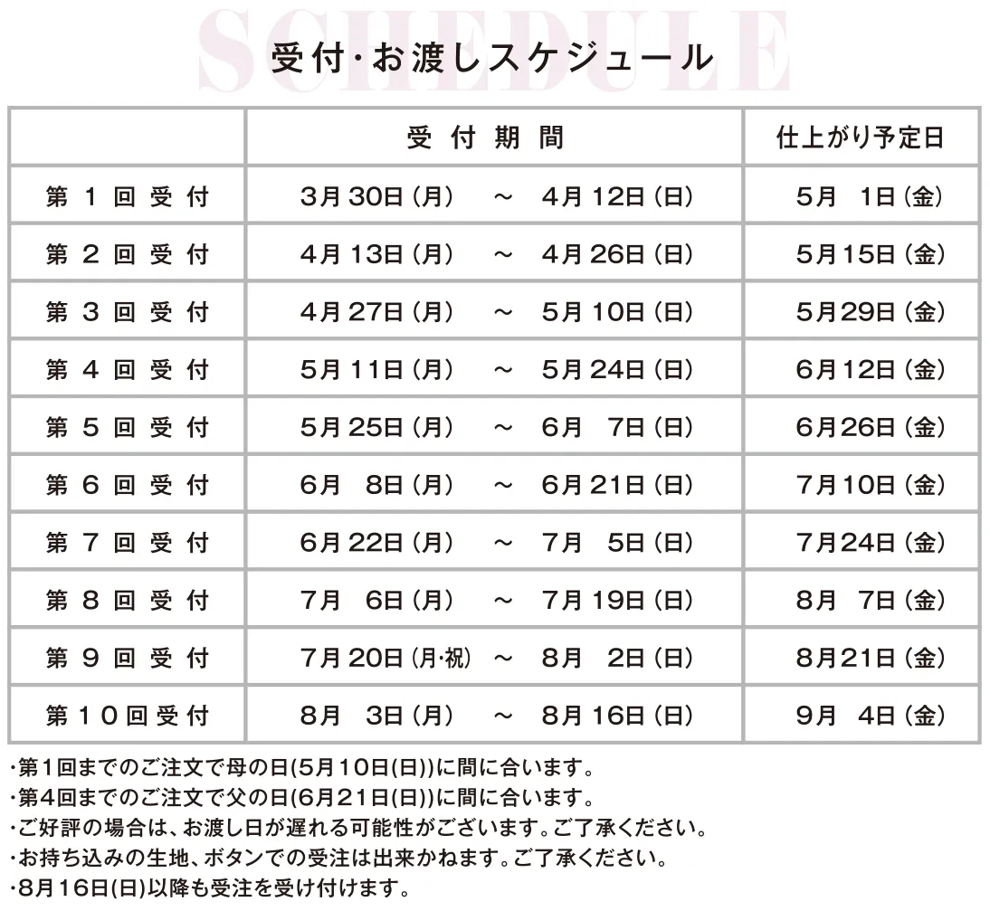 ※オンラインショップでの受付期間は日程が異なります。オンラインショップの商品ページをご確認ください。