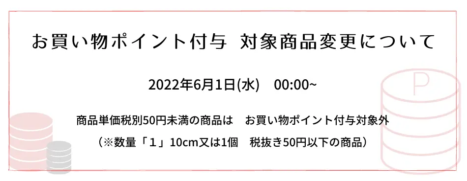 順次、各商品ページへ【お買い物ポイント付与対象外商品】の記載をいたしますが、