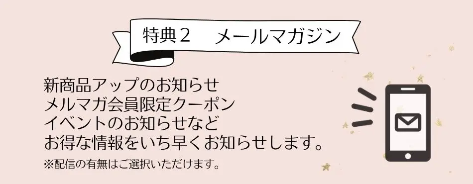 新商品アップのお知らせ・メルマガ会員限定クーポン・ゲリライベントのお知らせなど