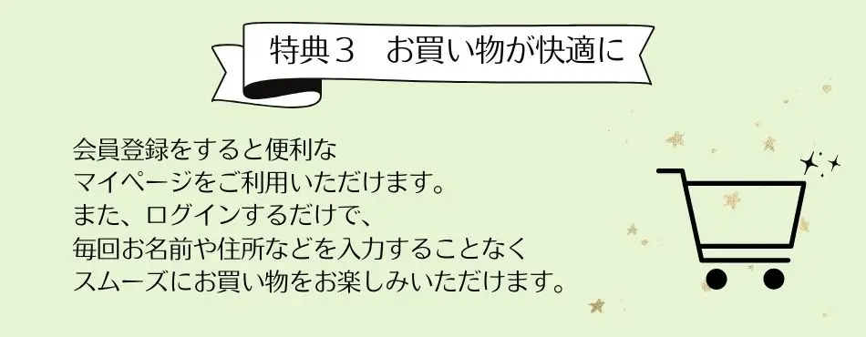 また、ログインするだけで、毎回お名前や住所などを入力することなく