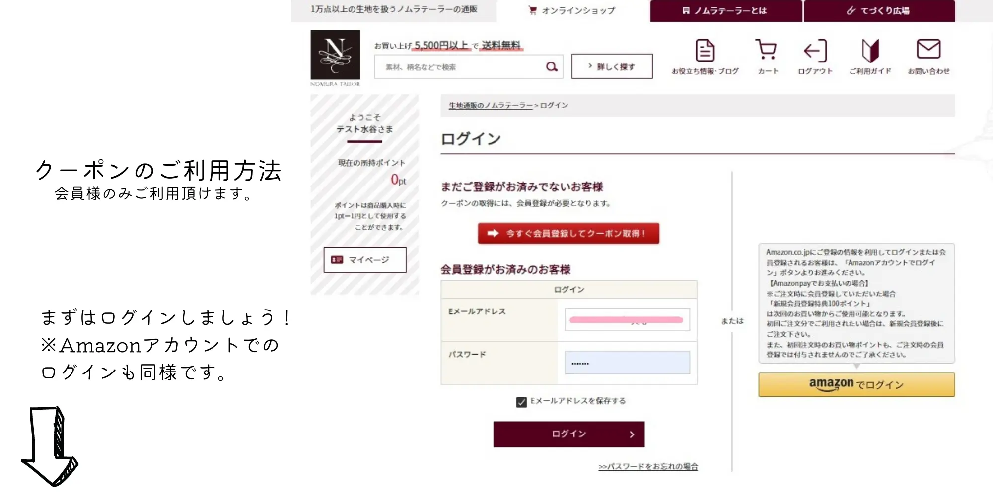 その他にもノムラテーラーオンラインショップでは会員様になっていただくと