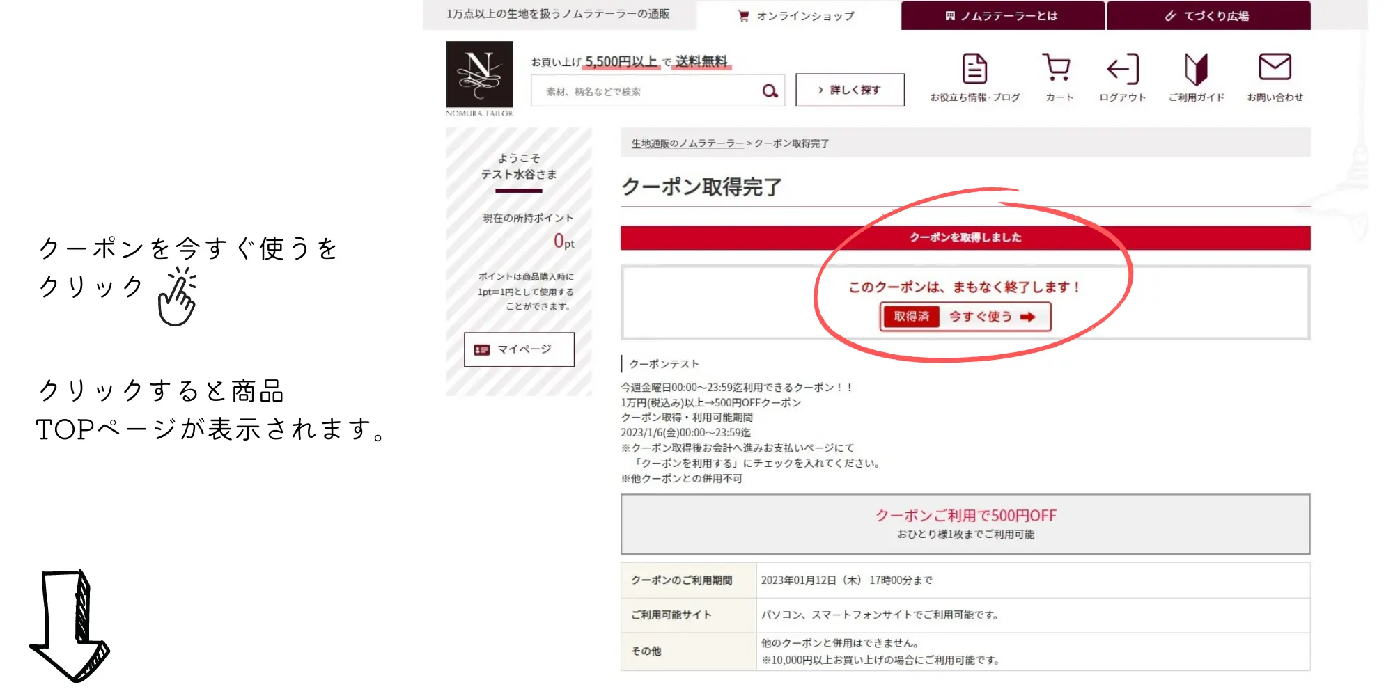 ノムラテーラーオンラインショップでは「メールマガジン会員様」へ毎週水曜日に金曜日にご利用頂けるクーポンを発送しております♪