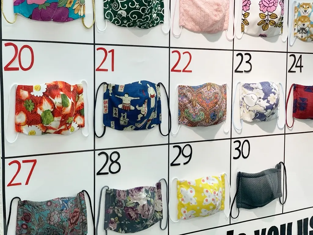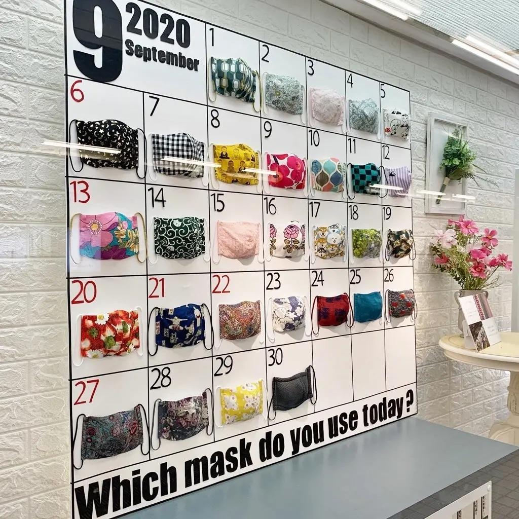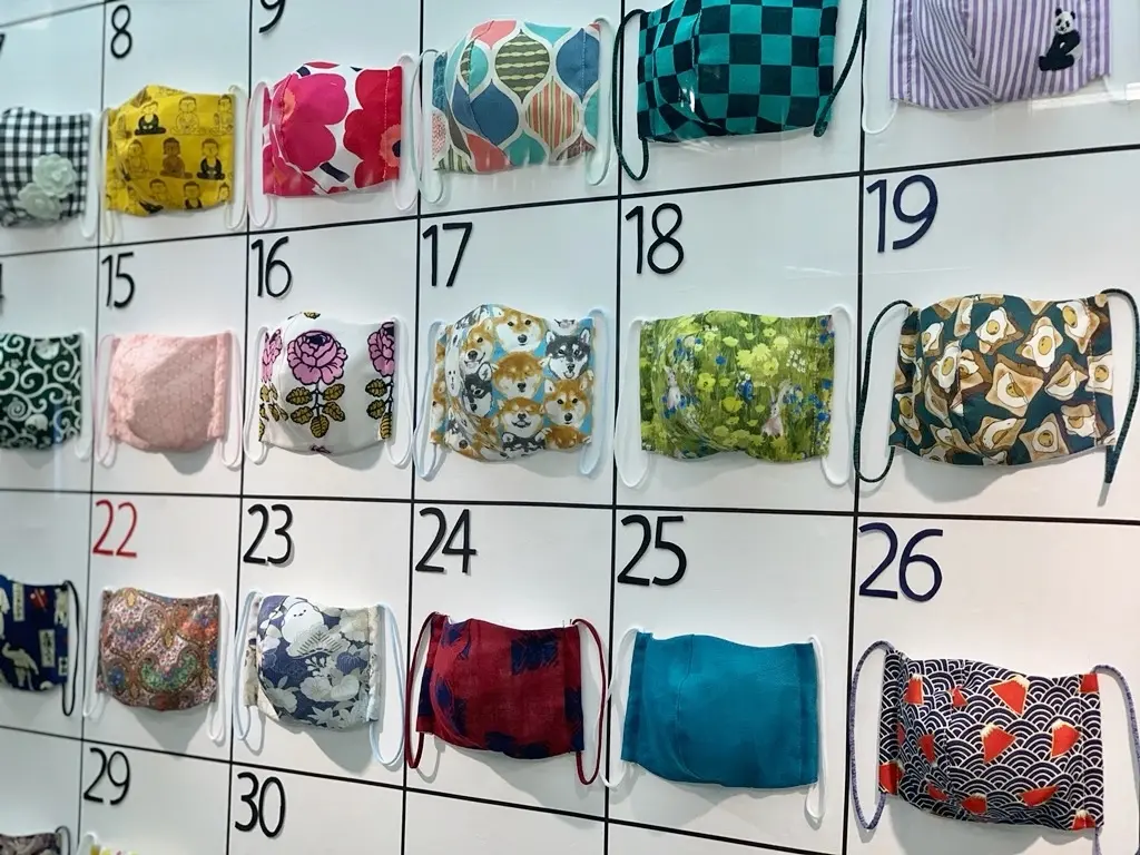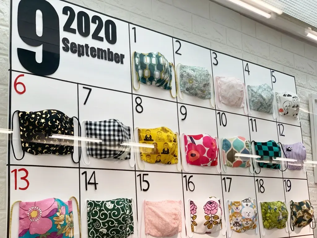 たくさんのマスク達をカレンダー風に展示しています。