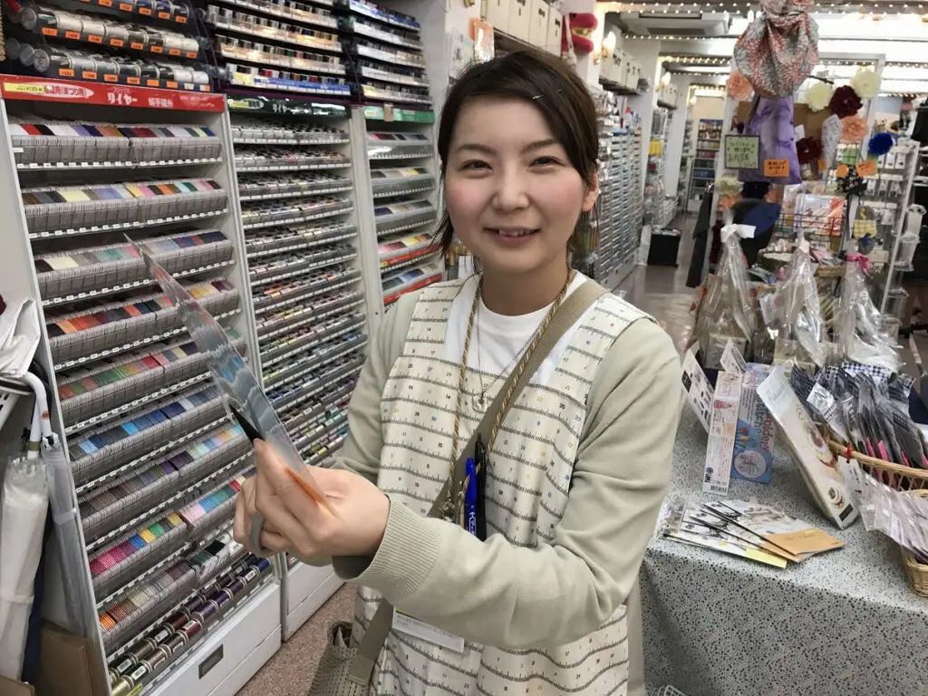 「四条店だと、1階で生地選びをお手伝いしても、糸は3階なので…って、