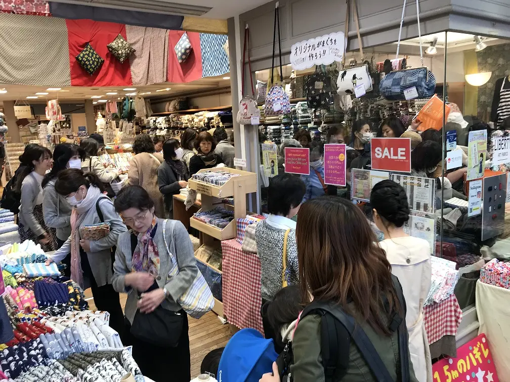 また月に一度のハギレセールは、開店前にお客様が長蛇の列を作られるほど大盛況だ。