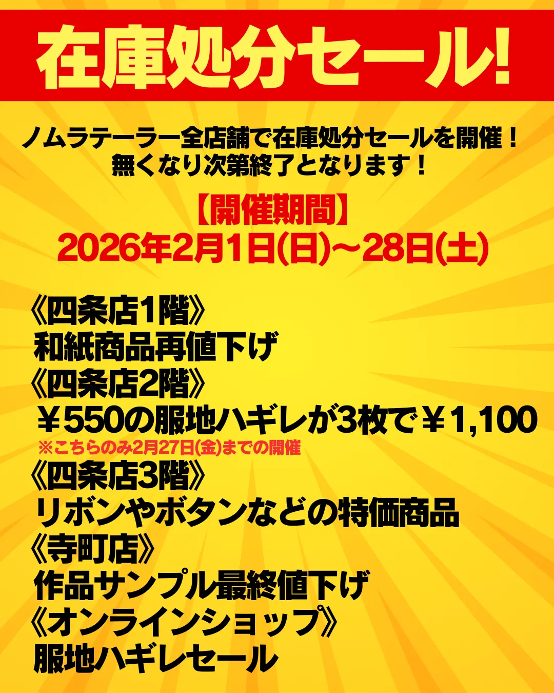 ノムラテーラー全店舗で《在庫処分セール》を開催✨