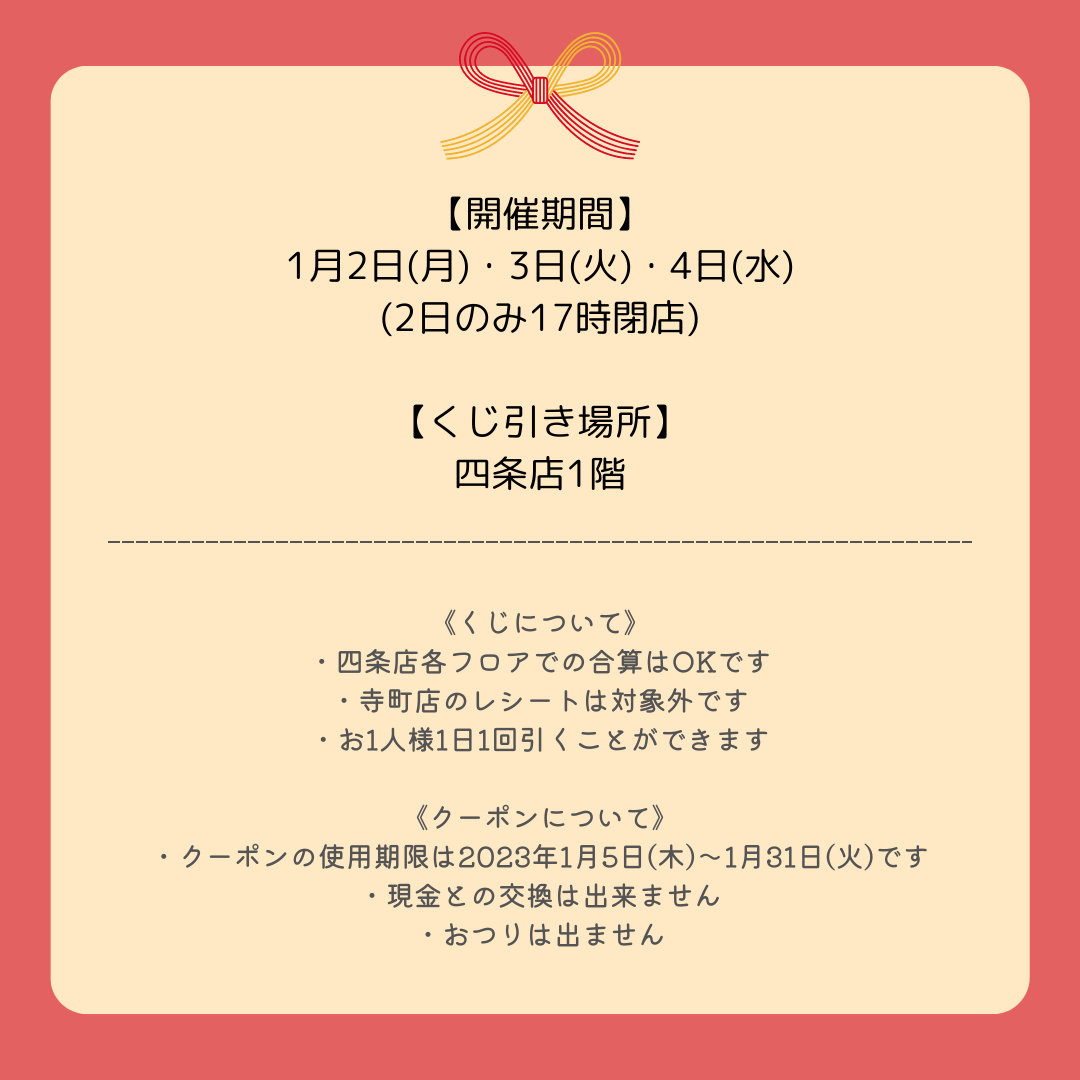 HOME > 会社情報:ノムラテーラーとは > お知らせ > 四条店のこと > ✨🎍 四条店 お正月イベント 🎍✨