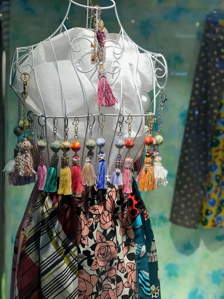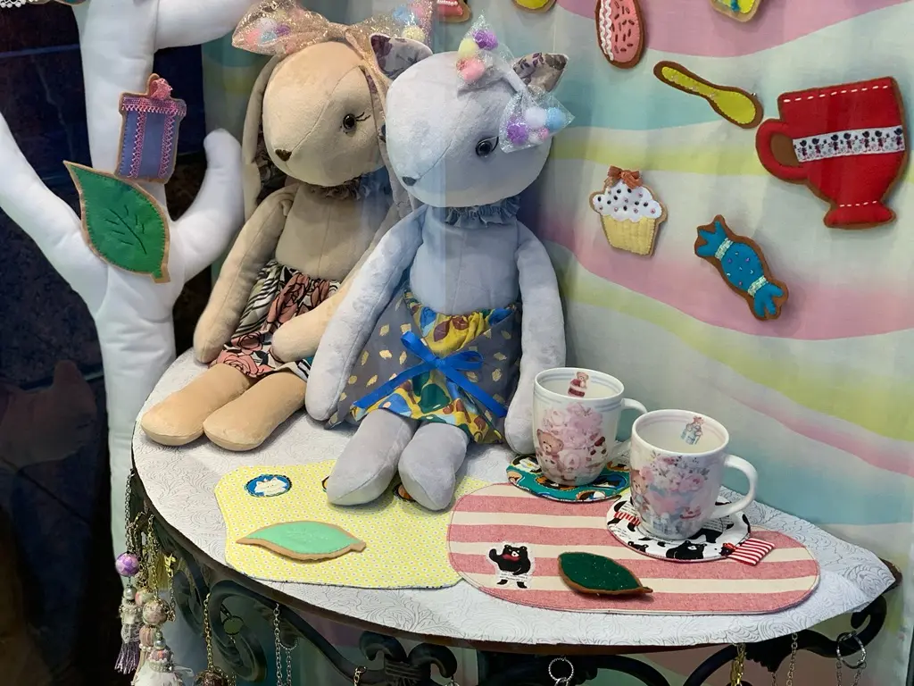 たくさんの生地たちを使って、お洋服やモチーフで布の世界を作りあげてくださっています💕