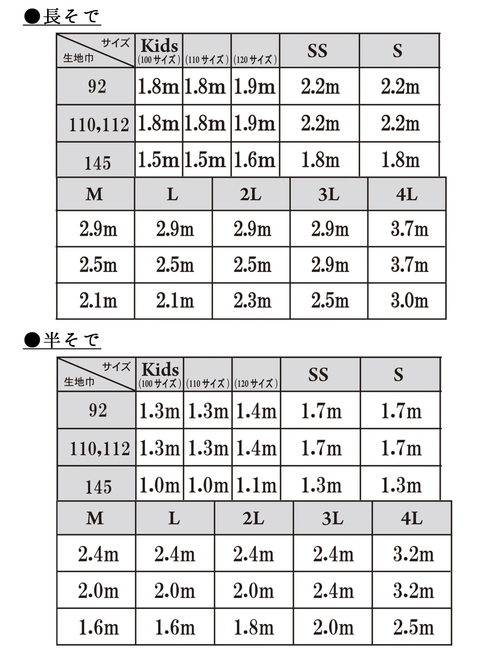 【サイズと生地の量】