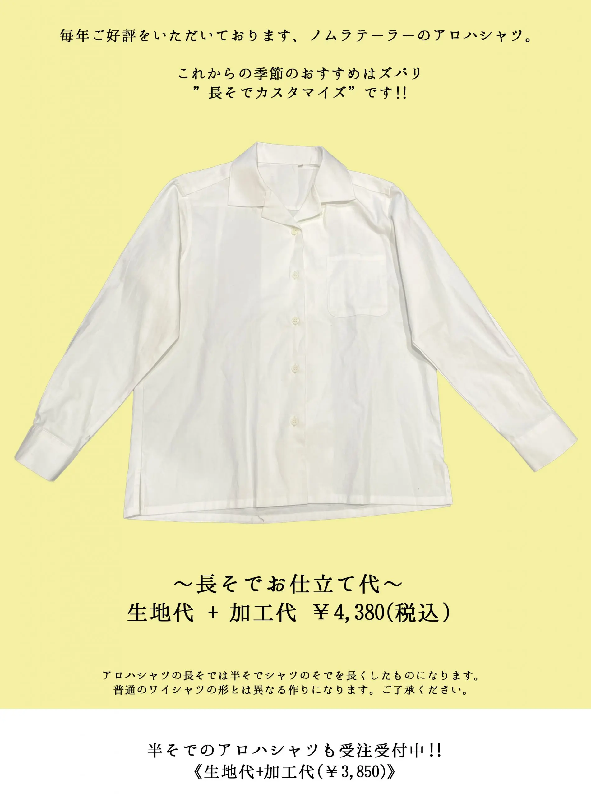 【四条店・寺町店】ノムラテーラーアロハシャツ 受注開始!