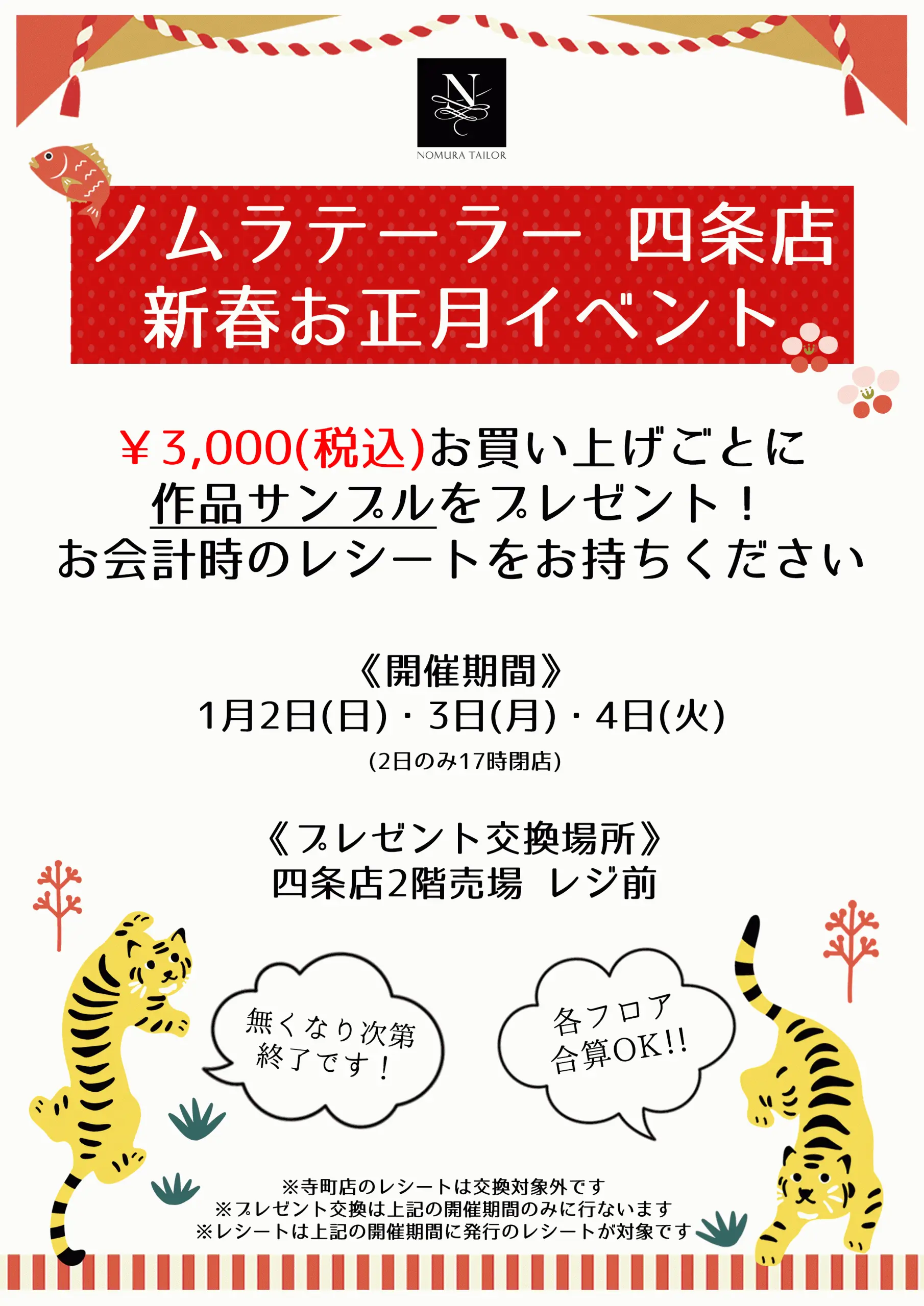 ノムラテーラー四条店ではお正月イベントを開催します!!