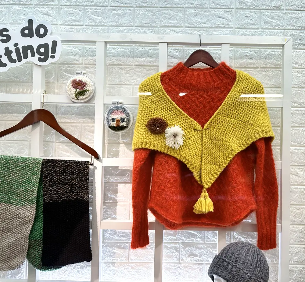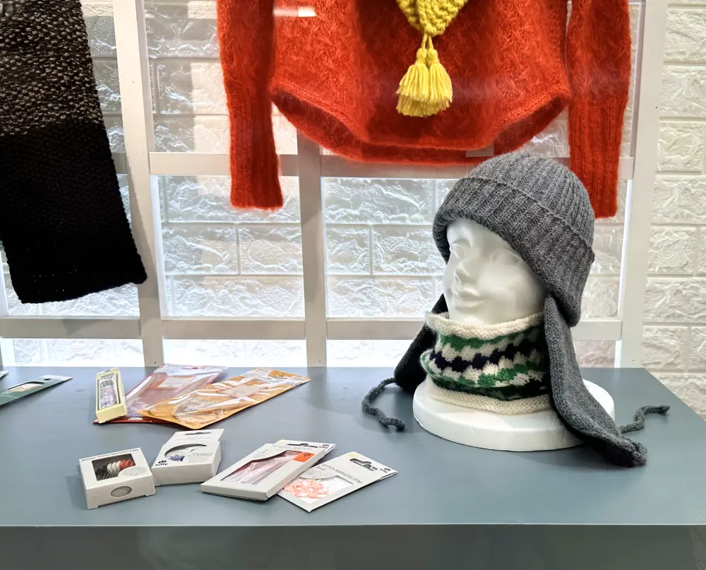 今回は編み物の作品やパンチニードルの作品を展示した、暖かな季節感のあるディスプレイにしました◎