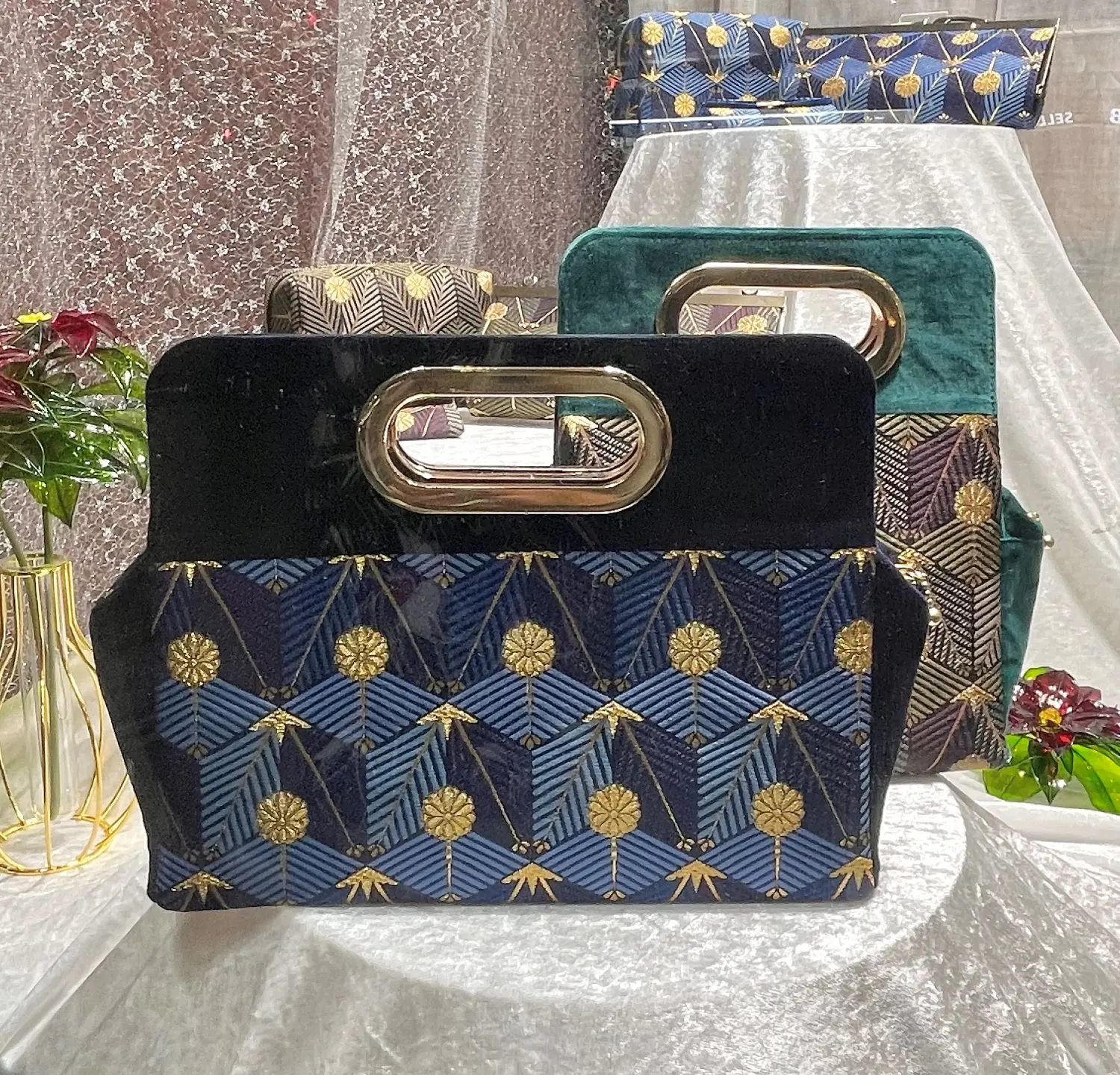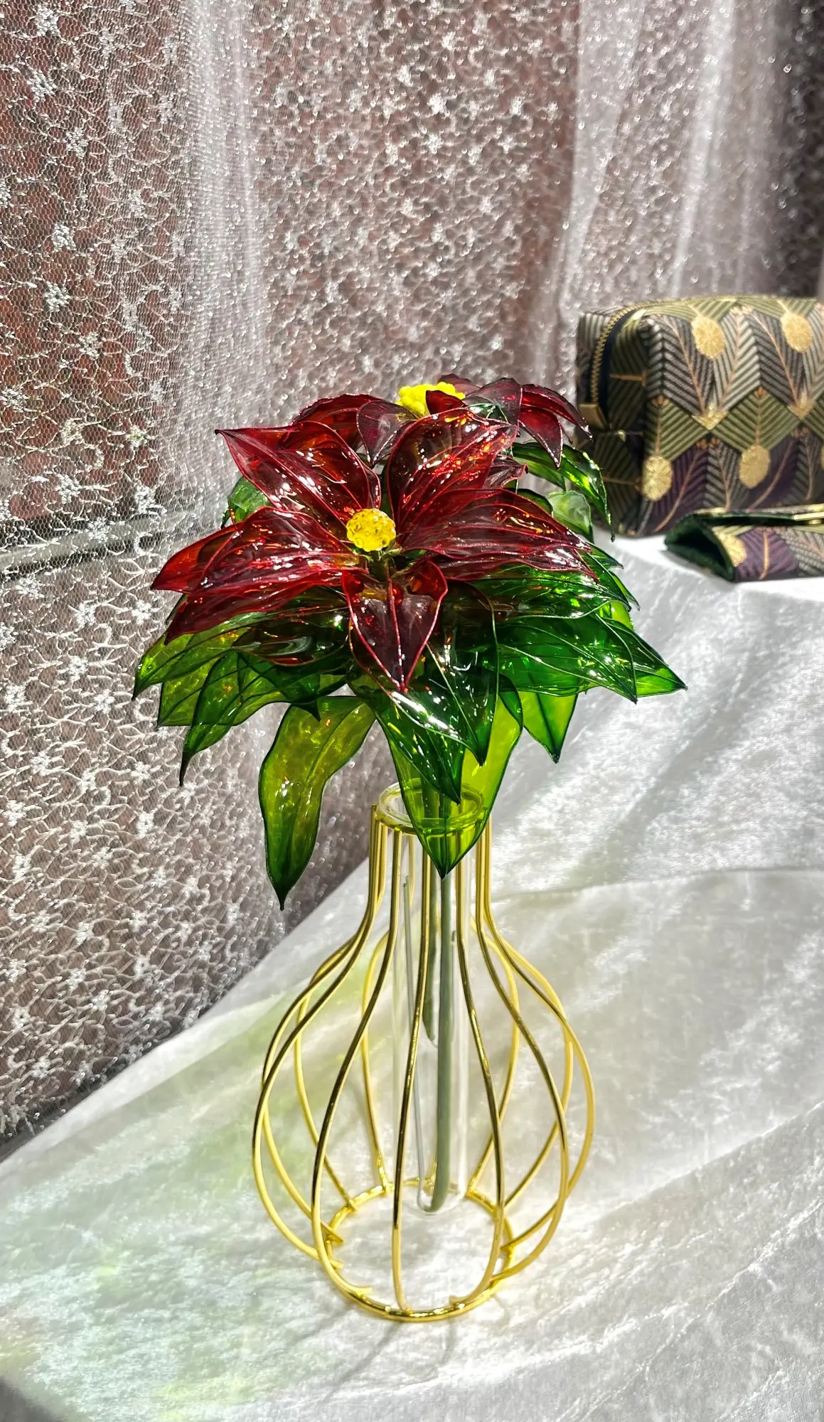 バッグの隣に飾ってあるディップアートのお花も作家様の作品なんです!