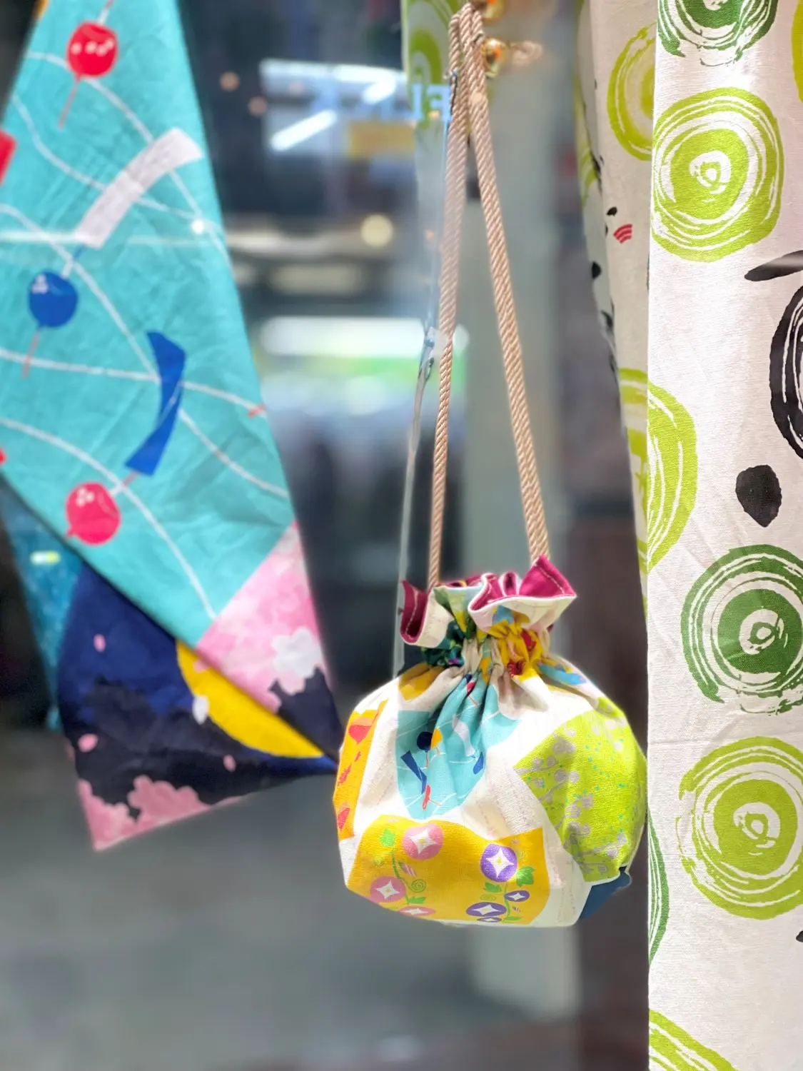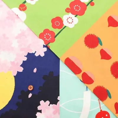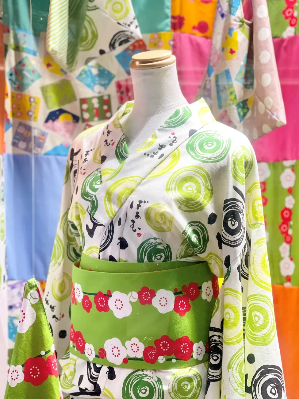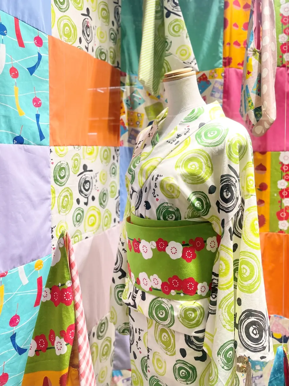 美十さんの生地を中心に、浴衣、帯、あずま袋、背景布にいたるまで