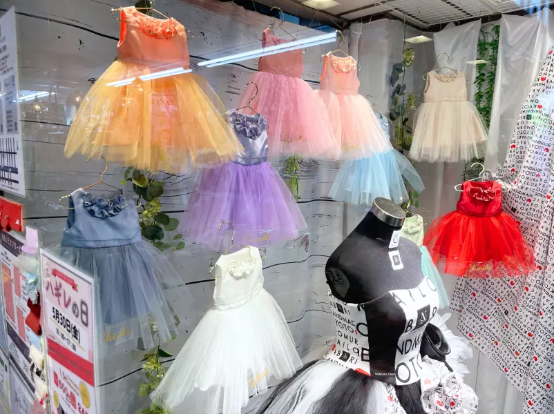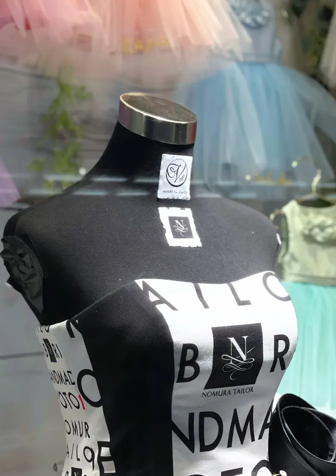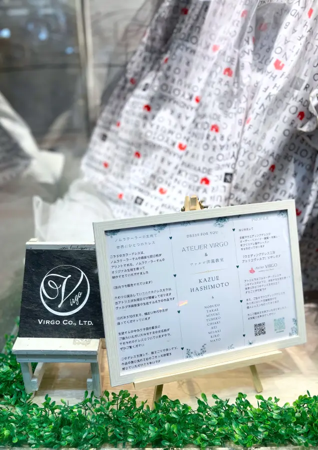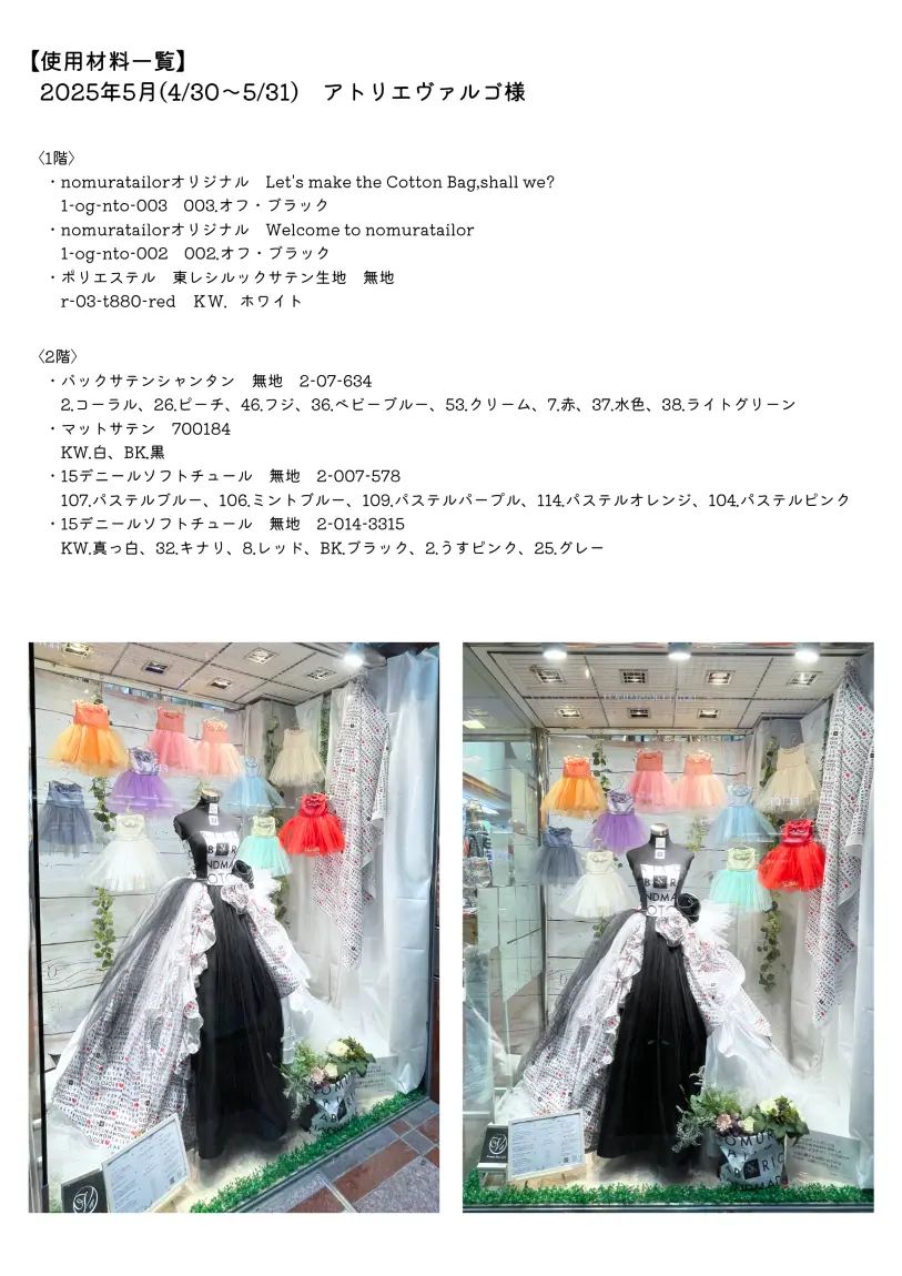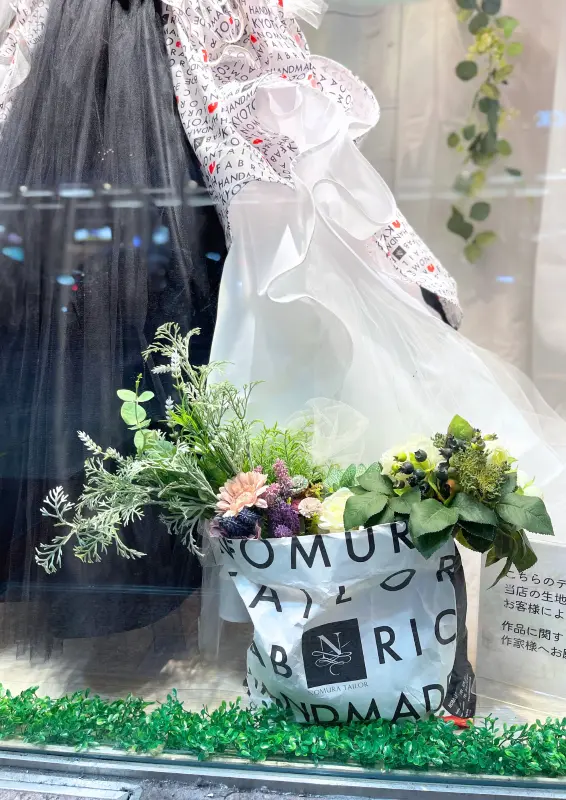 そう、なんと今月はノムラテーラーオリジナル生地を使用したドレスをメインとしたディスプレイなんです…!