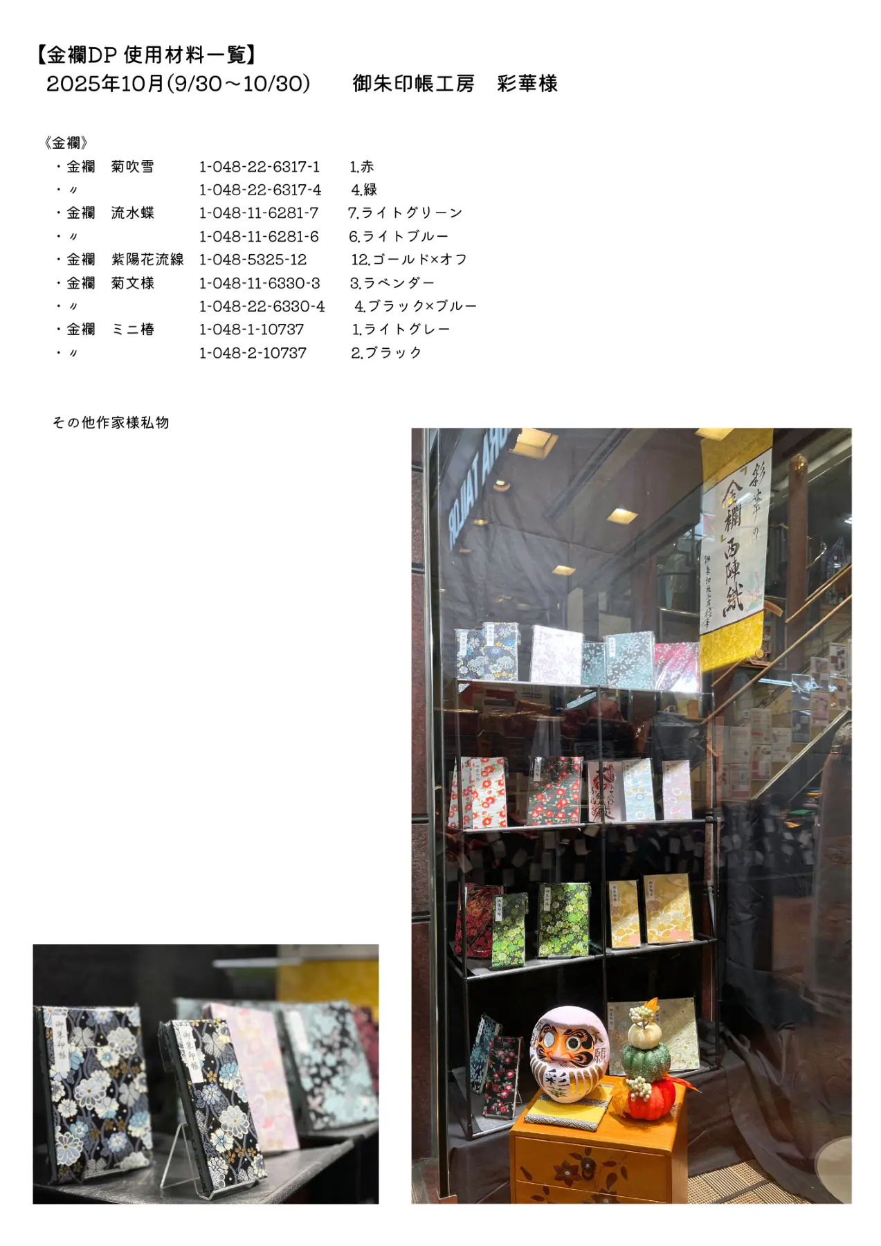 10月は 御朱印帳工房 彩華 様が担当してくださっています😌
