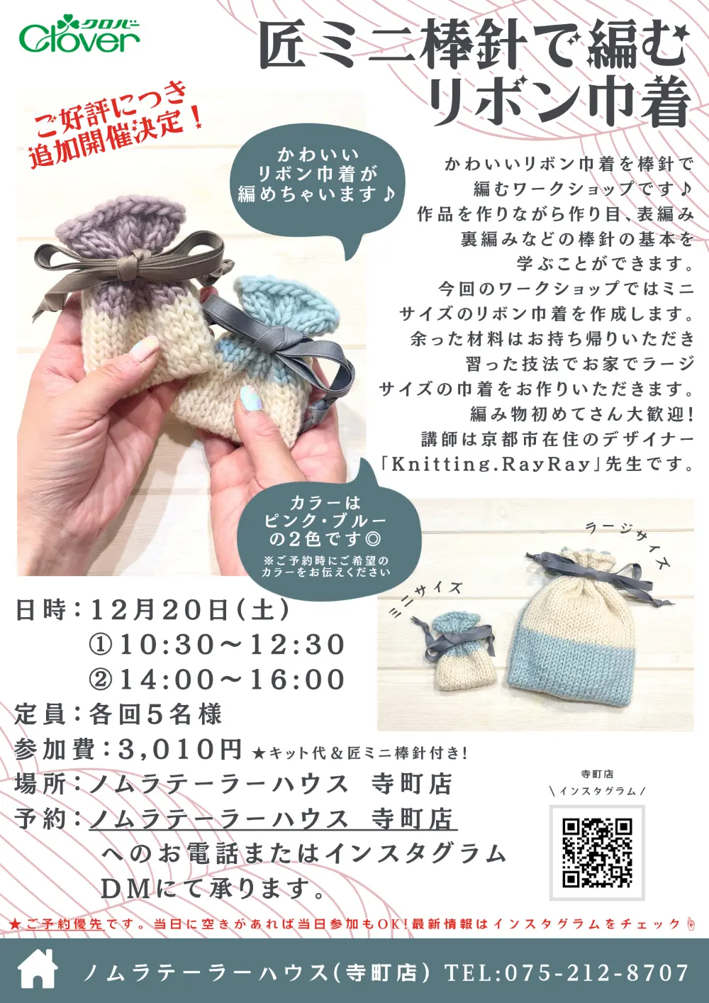 クロバーさんとの編み物コラボワークショップを開催します♪