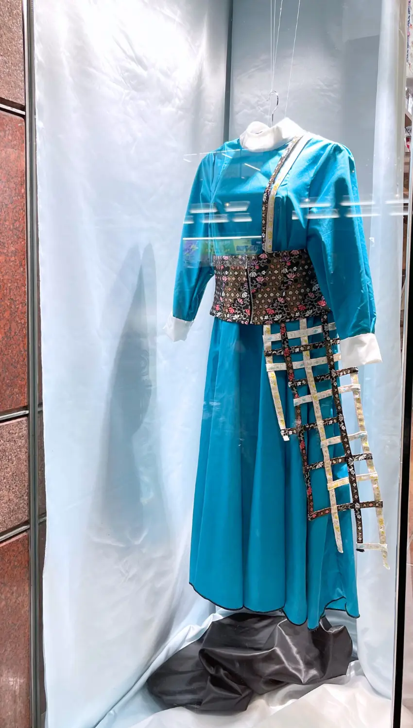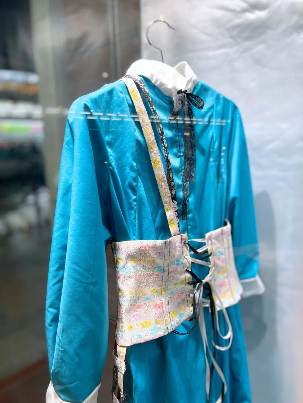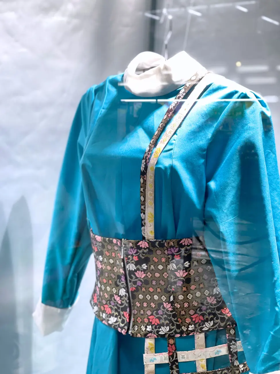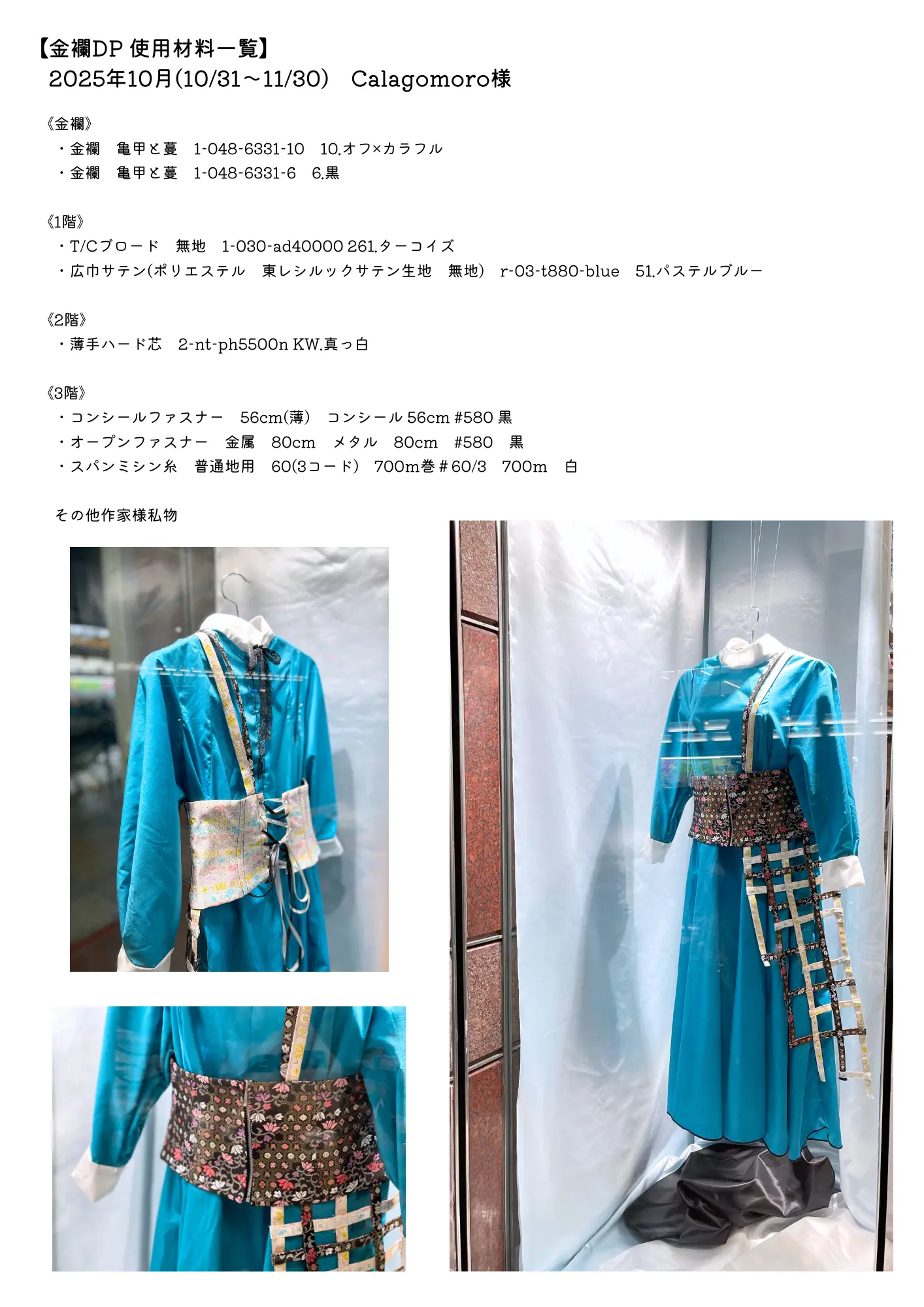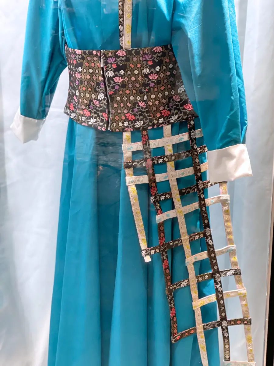 洋服の中に和のイメージの強い金襴を使用し