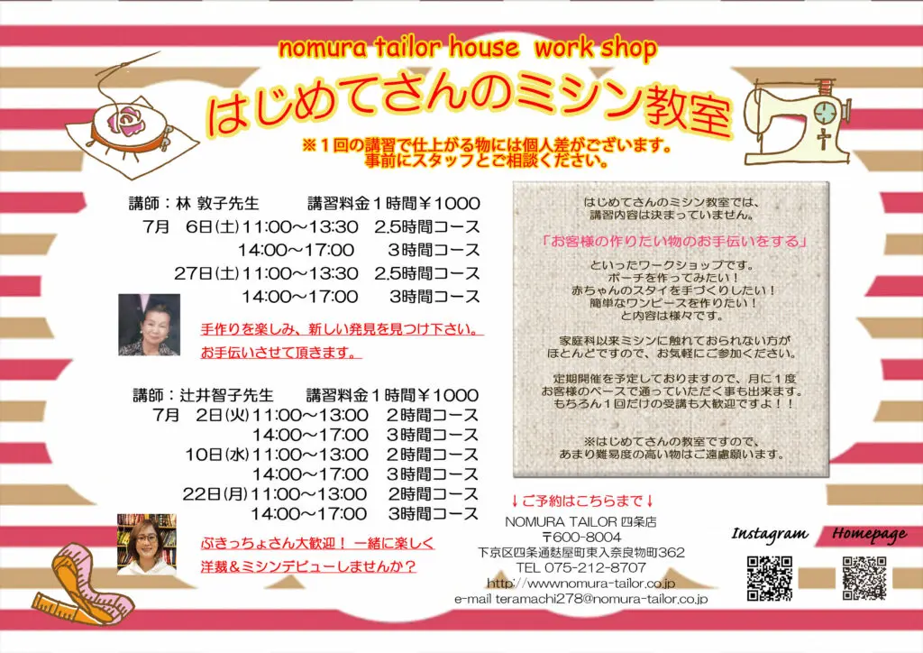 7月のワークショップは引き続き 四条本店の