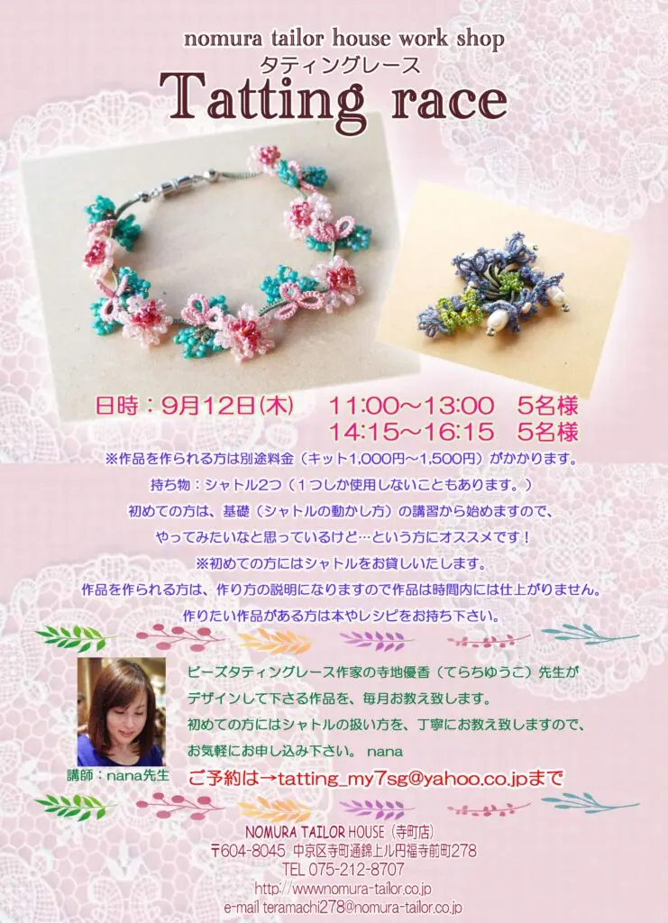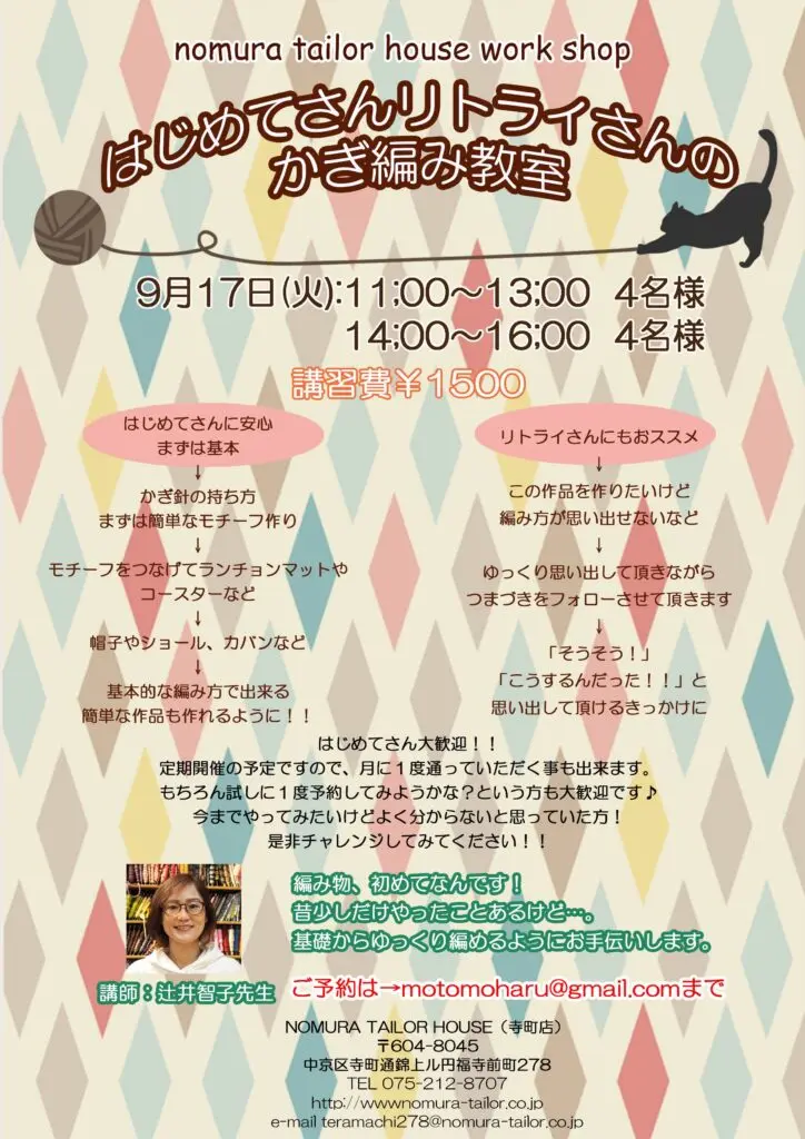 9月のワークショップ 寺町店 2019/08/17 こんにちは! ノムラテーラーハウスです。 9月のワークショップの予定が決まりました(^^)/ ご予約等はチラシに記載の担当講師に 直接ご連絡をお願いいたします!! <アヴリル×ノムラテーラーコラボ企画 アヴリルの糸でつながる縁結び 8月30日はハウス(寺町店)のハギレの日!!> カテゴリ すべて オンラインショップ 四条本店 寺町店 そのほか 一覧に戻る