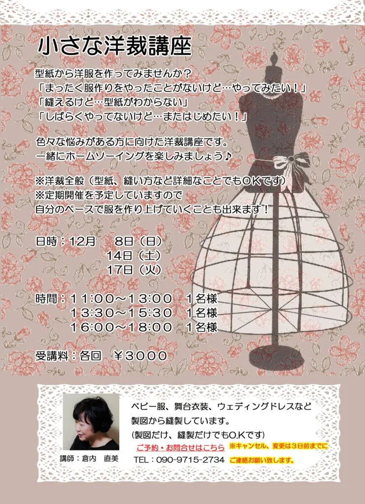 ご予約方法はPOP掲載のそれぞれ担当講師の方に
