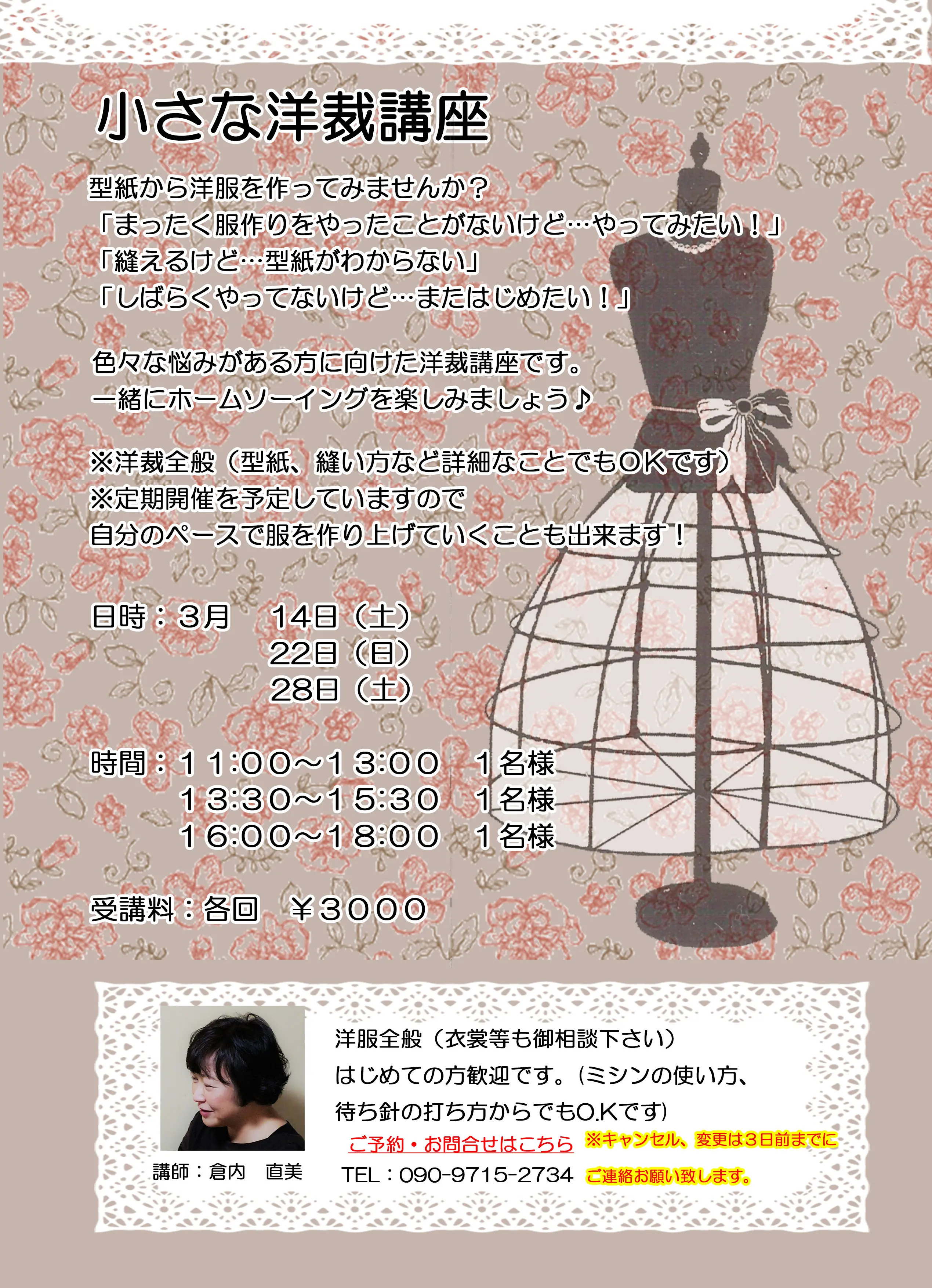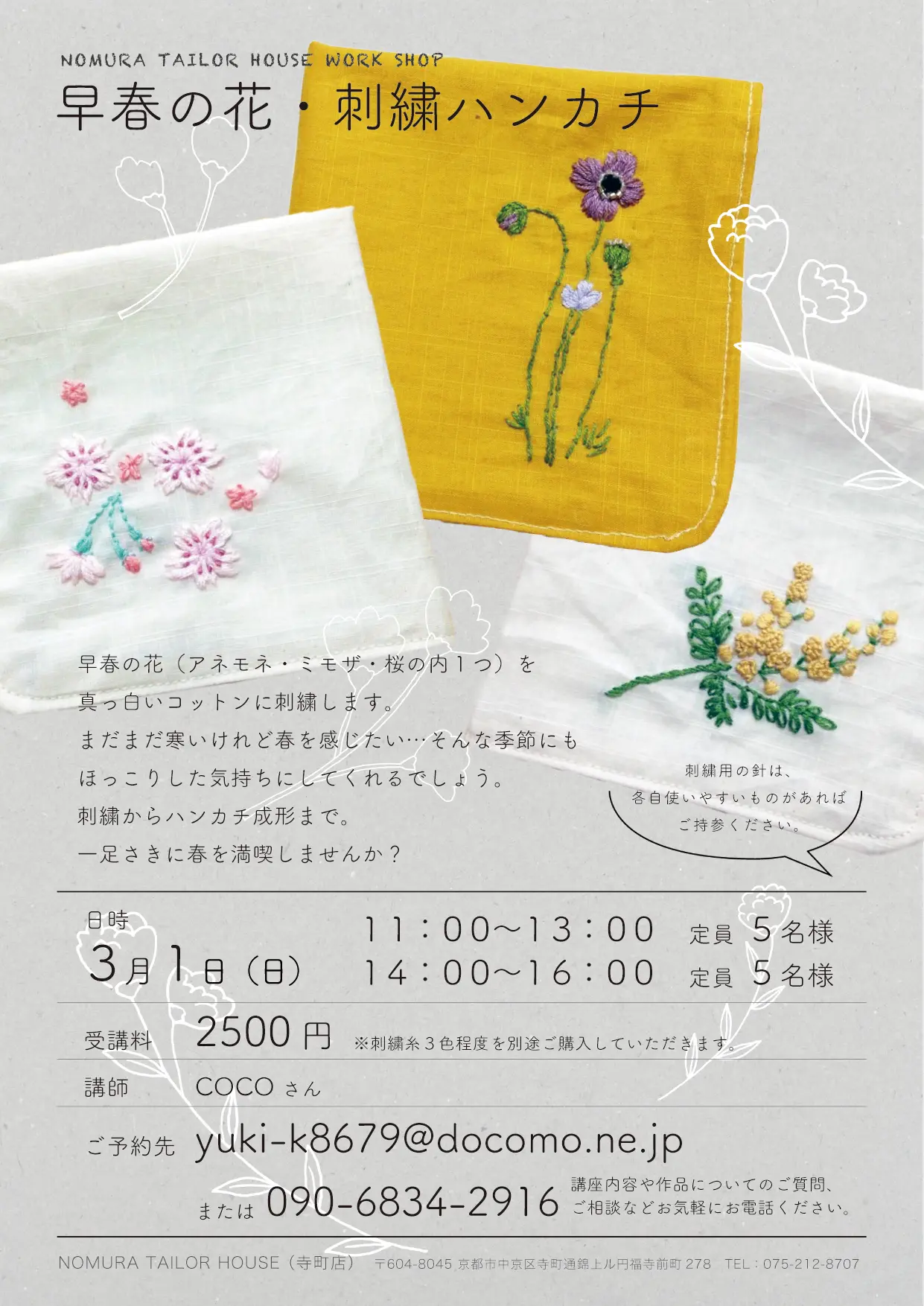 3月のワークショップの予定が決まりましたので、