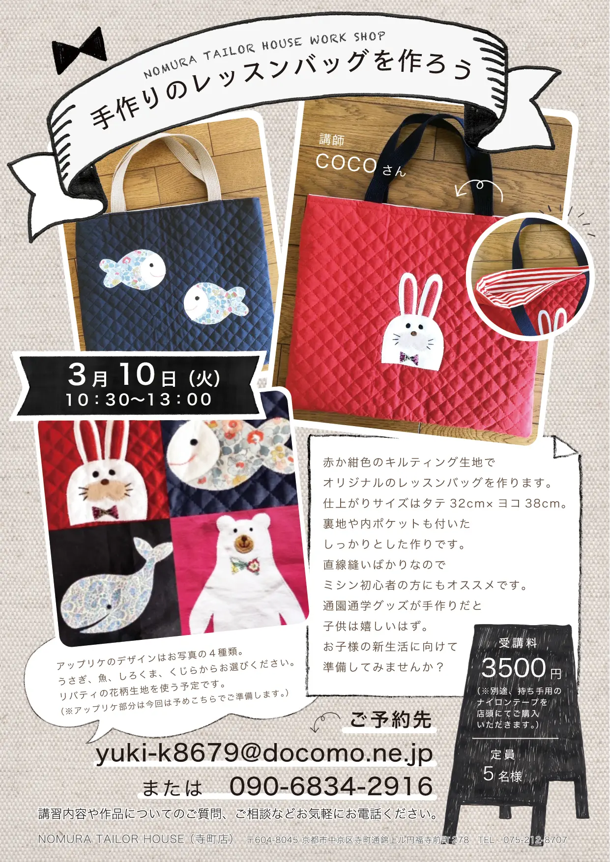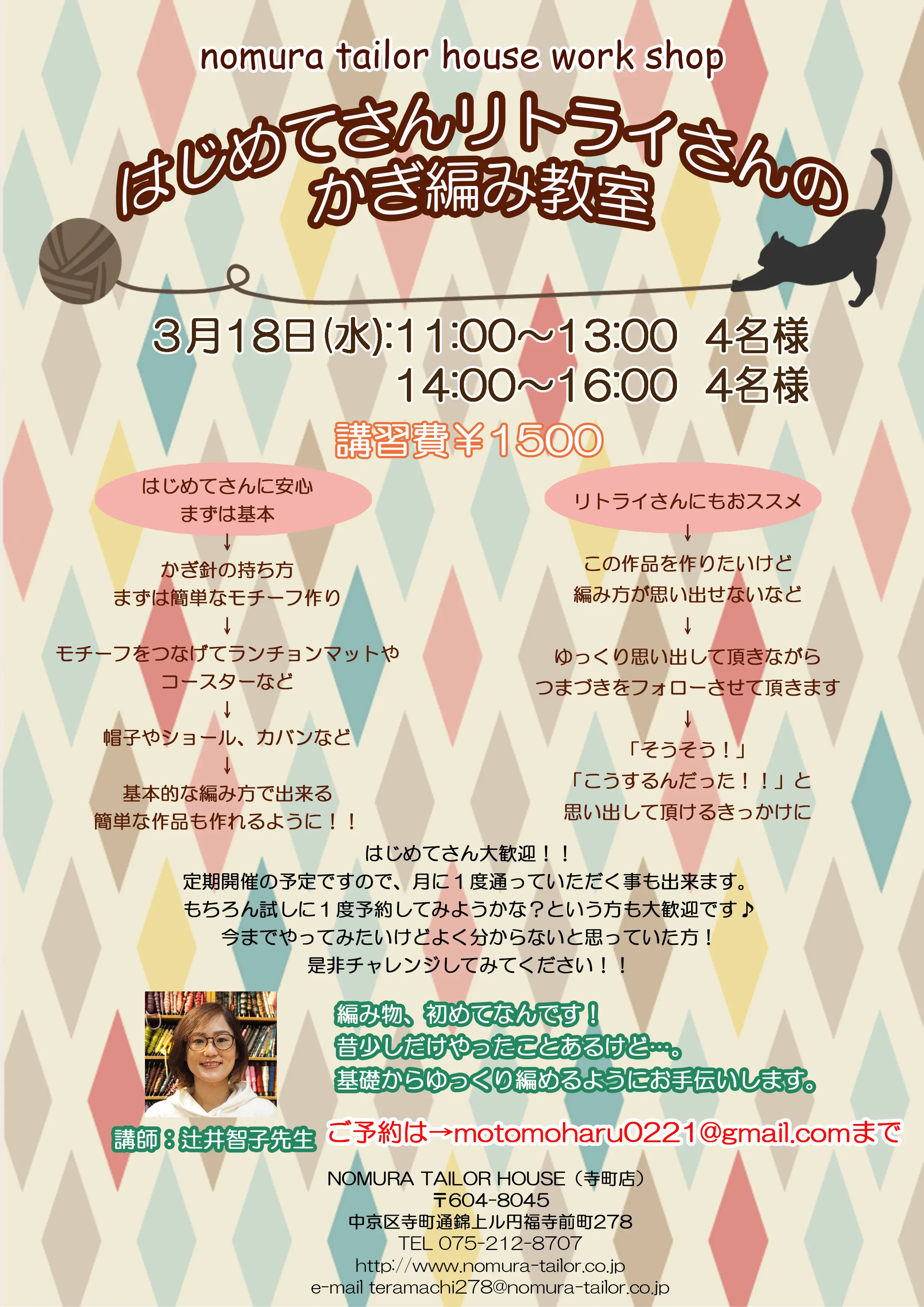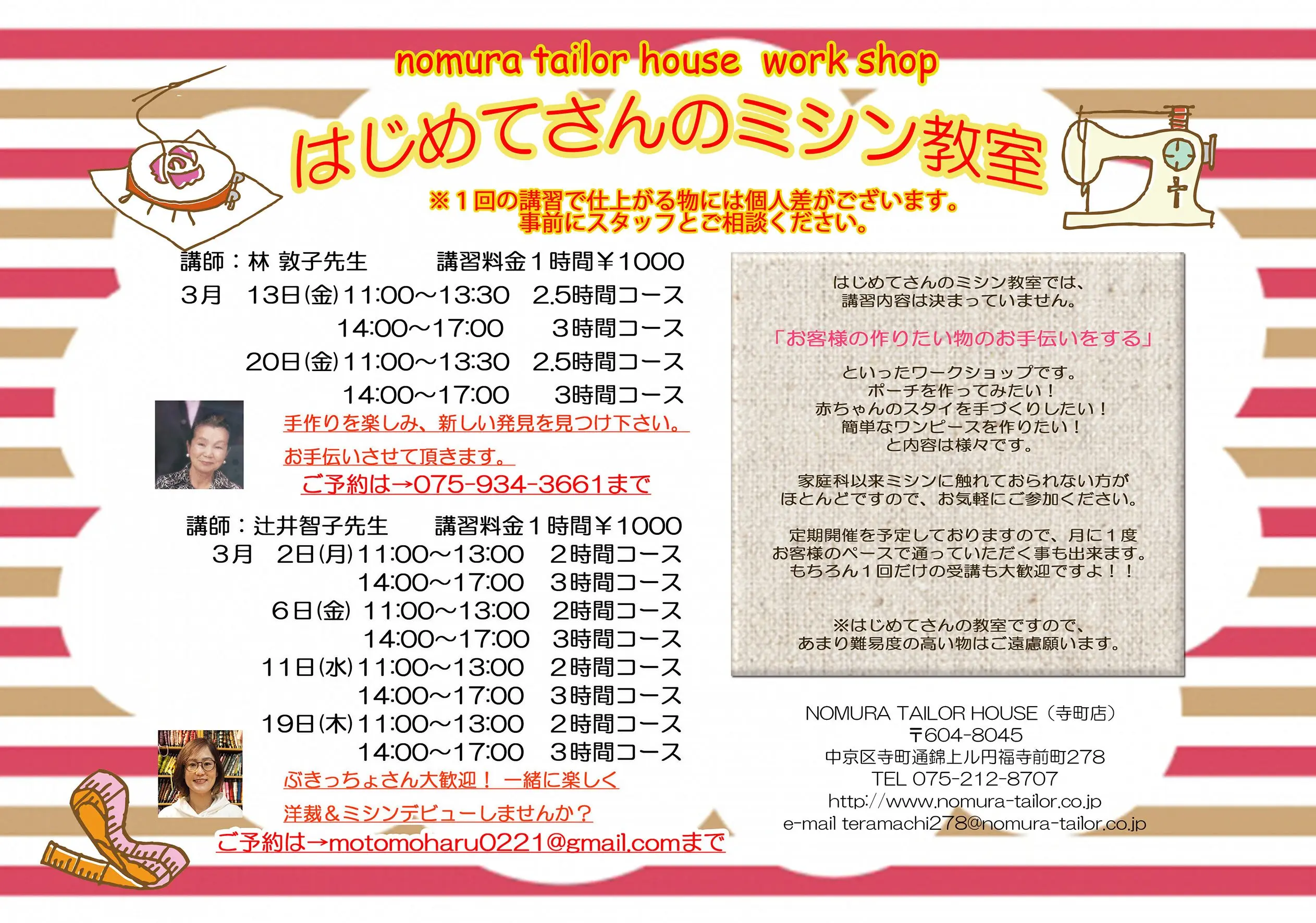ご予約は、各ワークショップの担当講師の方へ、直接お願い