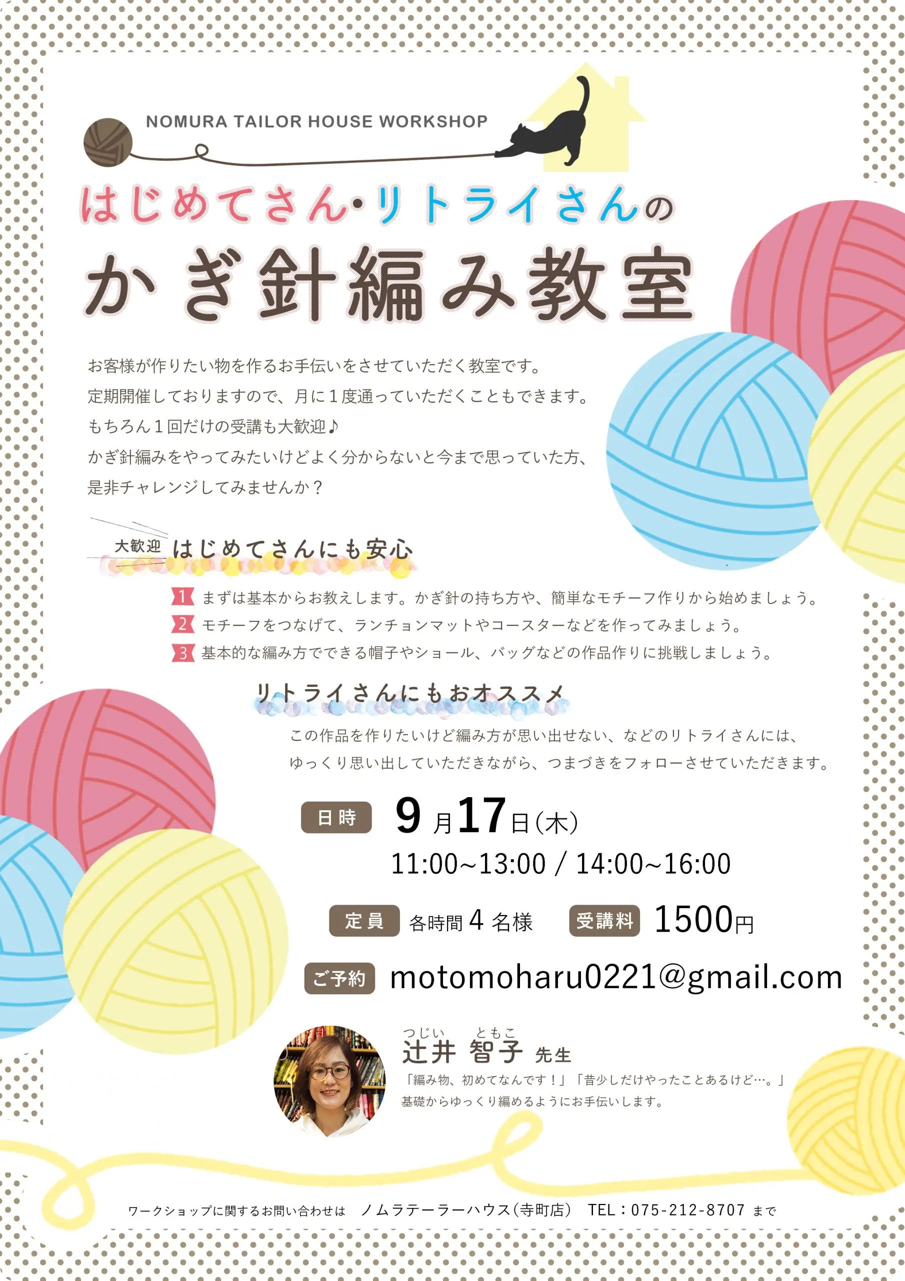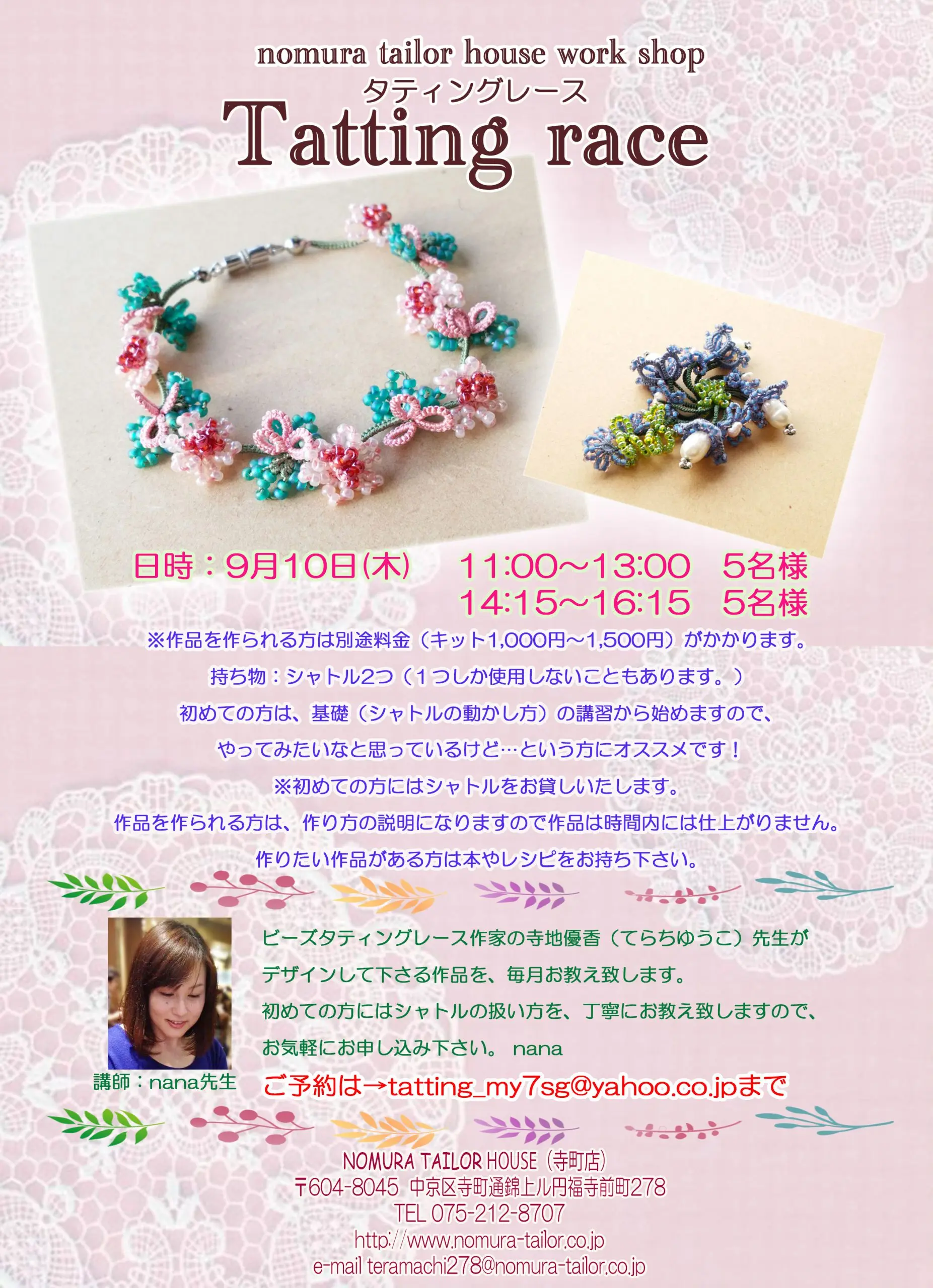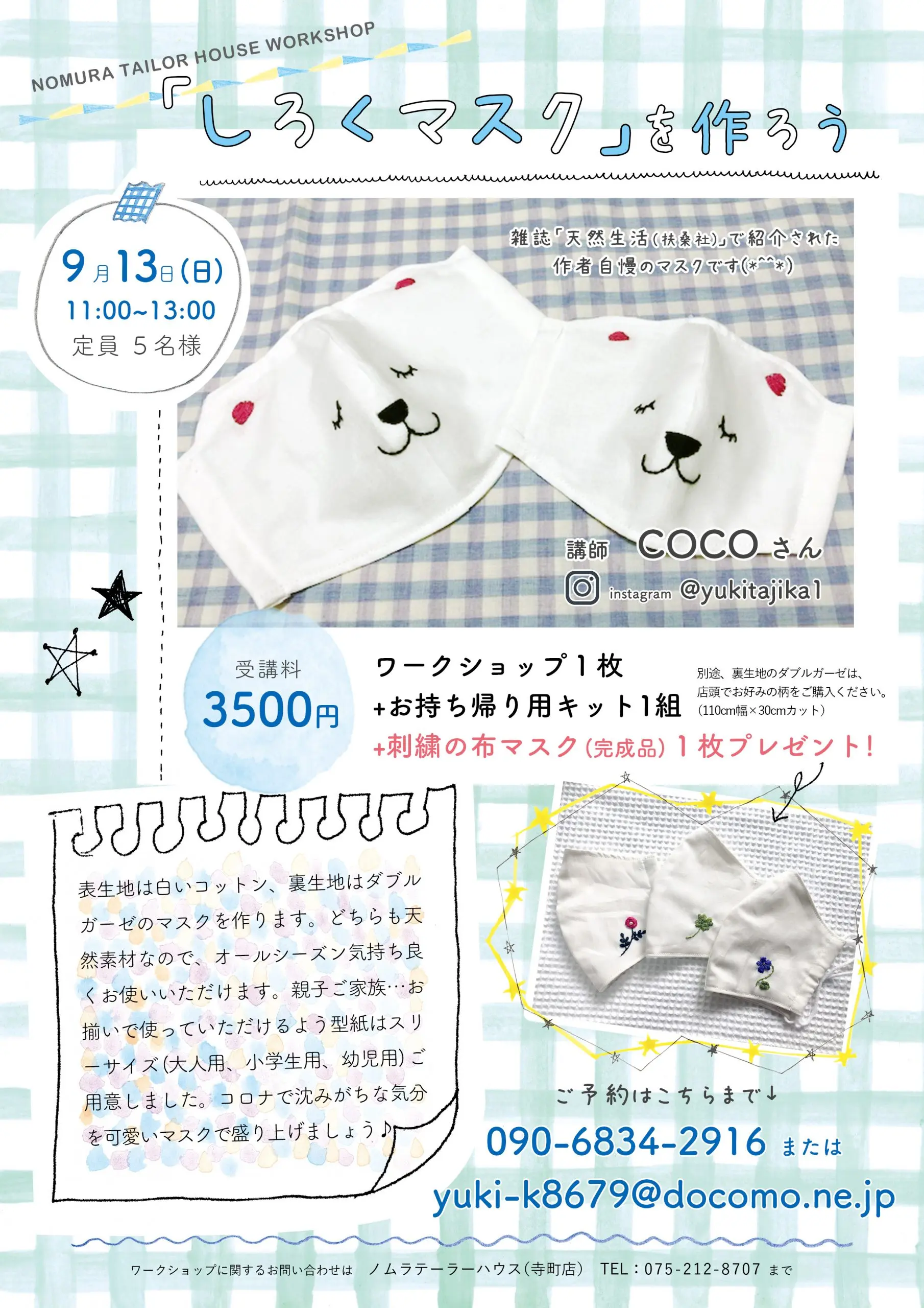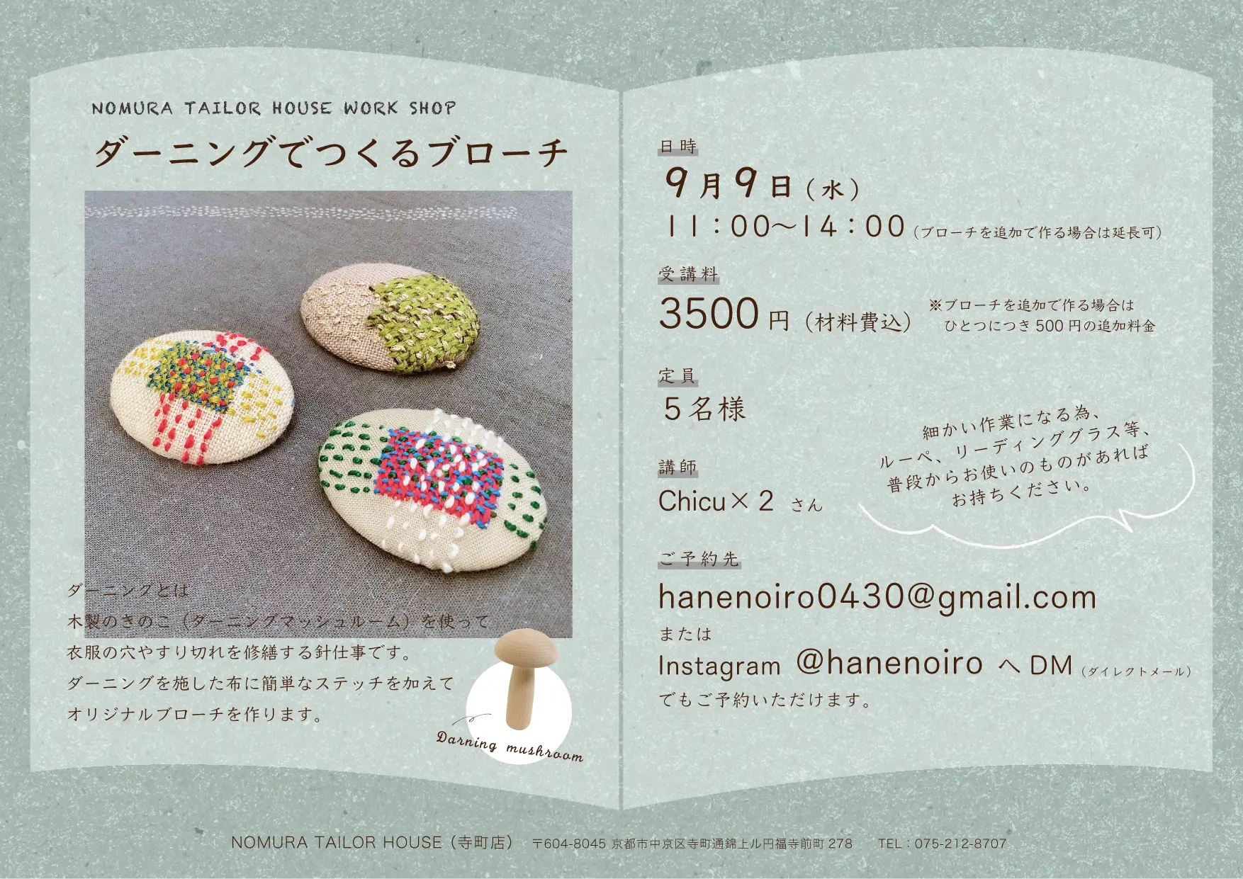 ワークショップに関するお問い合わせは、ノムラテーラーハウスまで٩( ‘ω’ )و