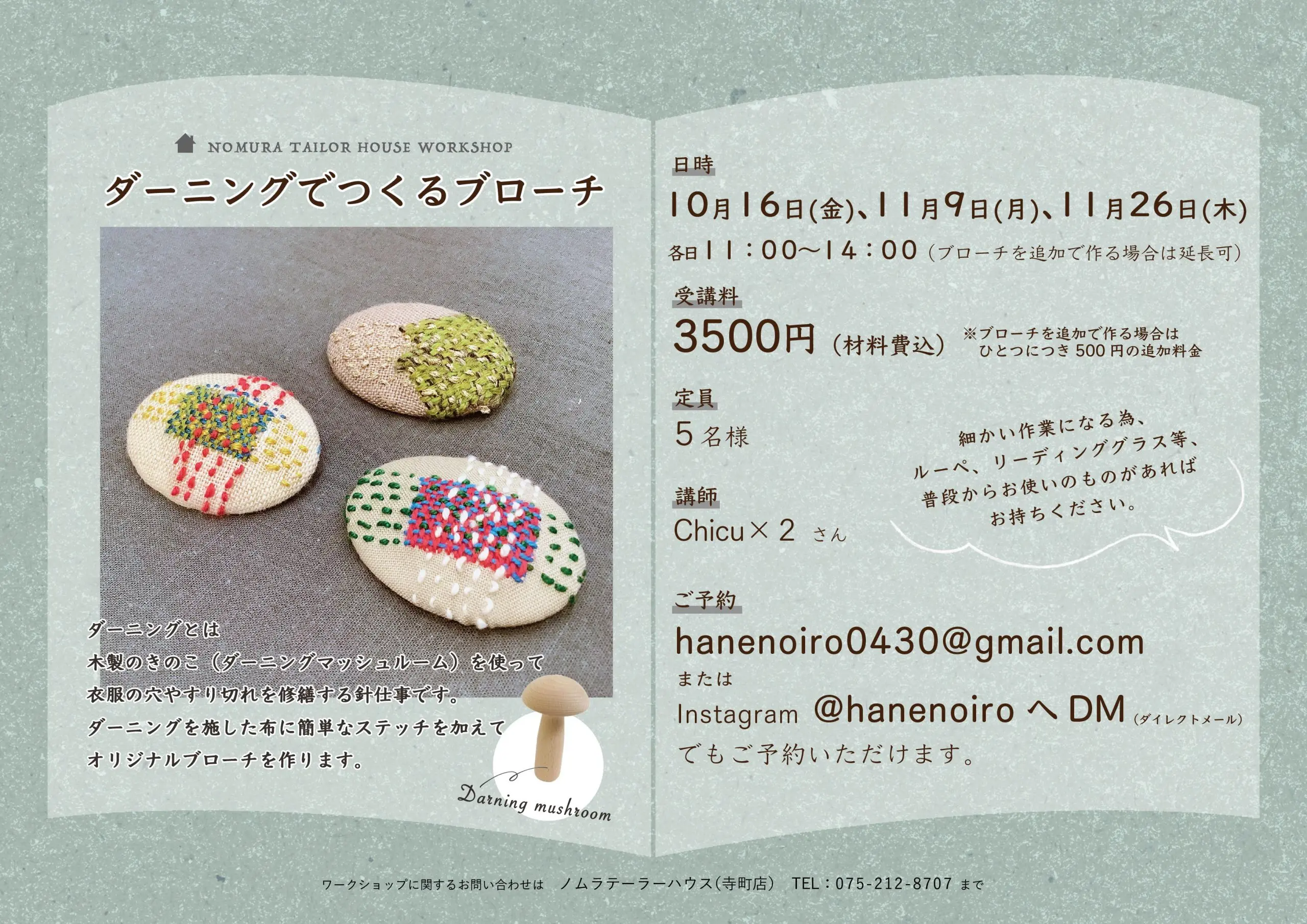 ワークショップに関するお問い合わせは、ノムラテーラーハウスまで٩( ‘ω’ )و