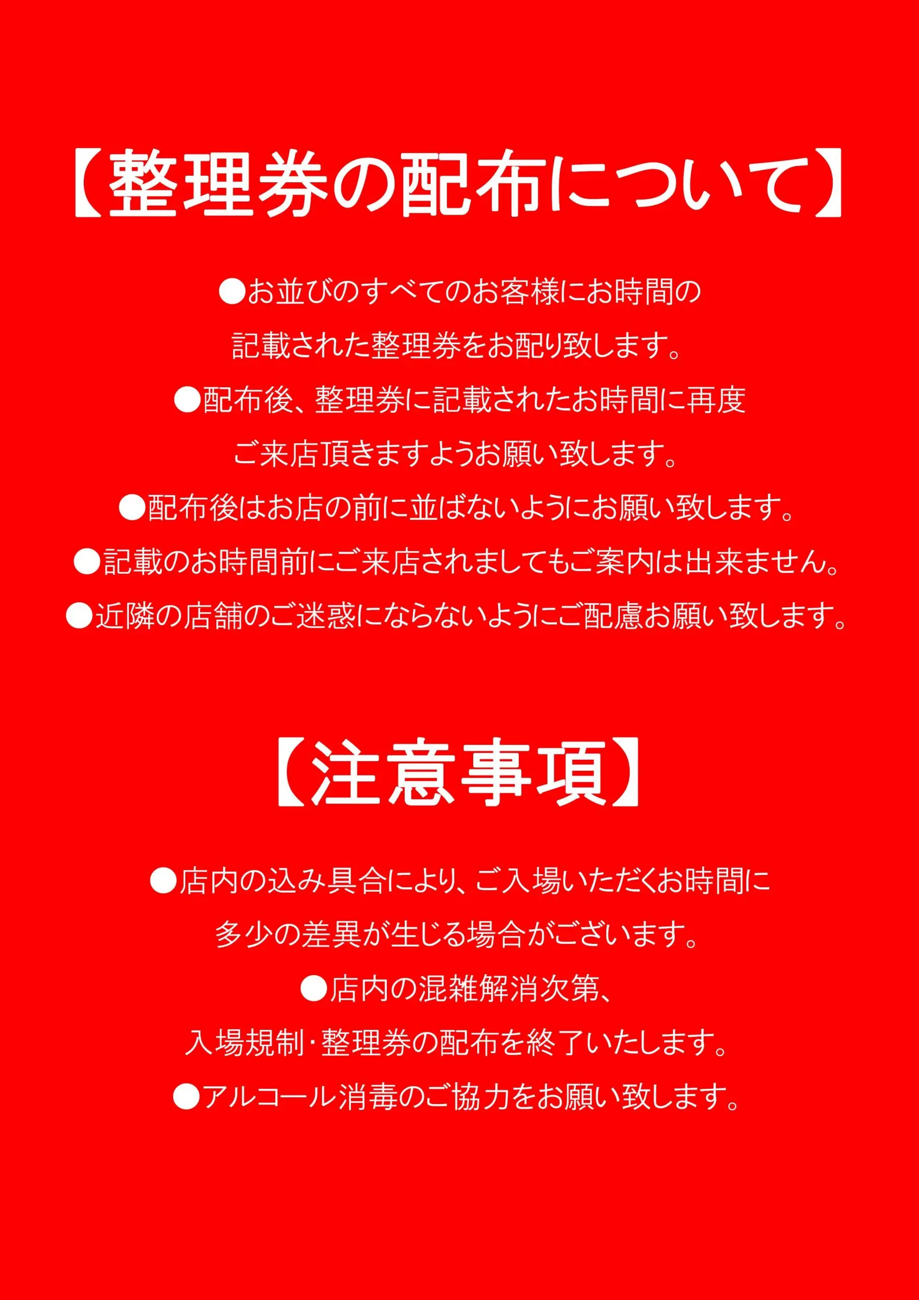 ・配布後はお店の前に並ぶことは禁止とさせていただきます。