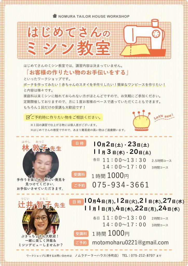なおワークショップに関するご質問はノムラテーラーハウスでもお伺い致します。
