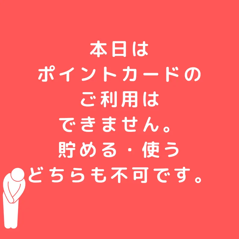 ※当日はポイントカードのご利用(使う・貯める)ができませんので、あらかじめご了承下さい。🙇♀️
