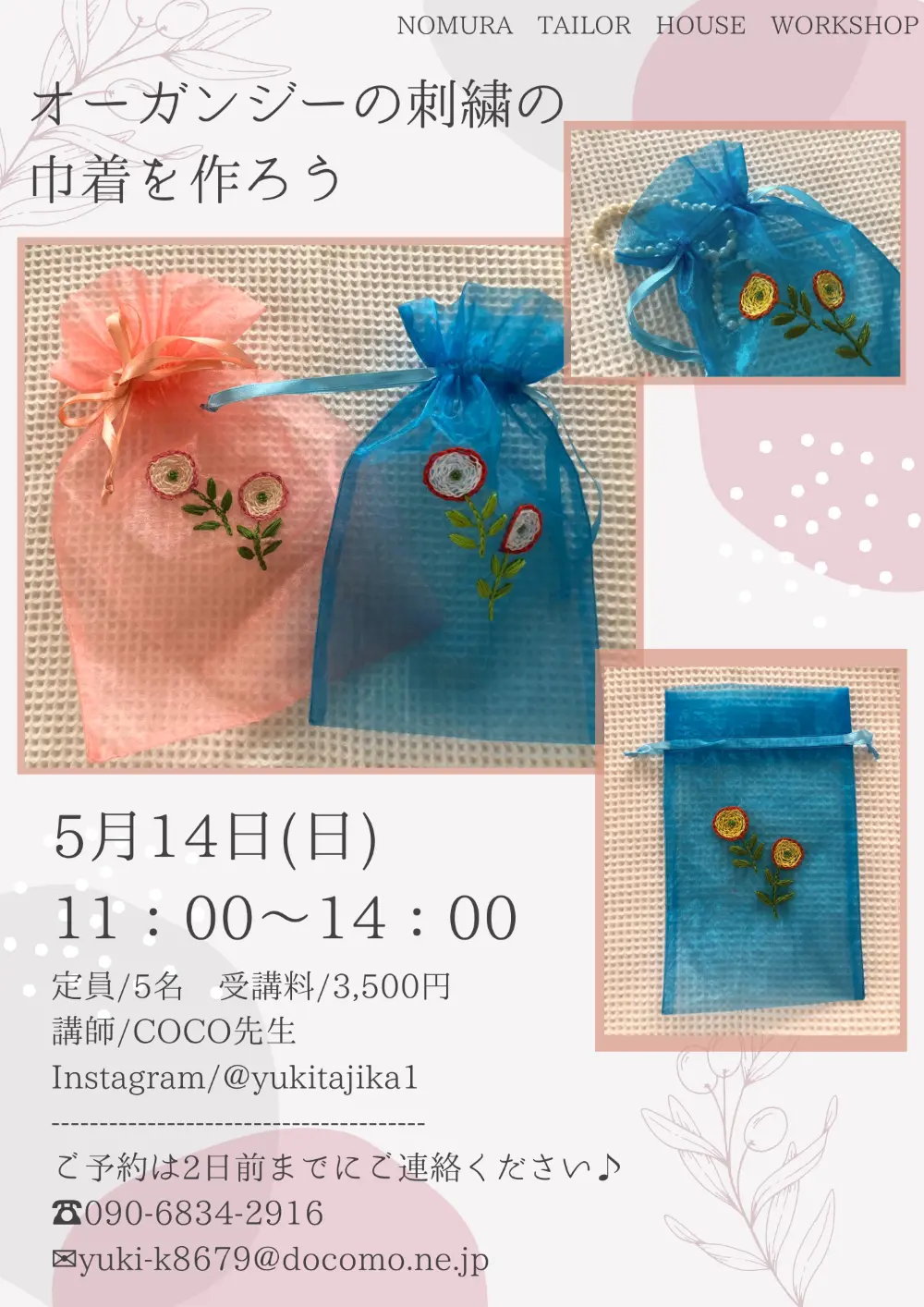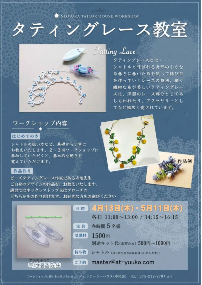 【寺町店】4月・5月ワークショップのお知らせ 寺町店 2023/03/27 こんにちは😊ノムラテーラーハウスです🏠 だんだん春の訪れを感じるこの季節✨ 新しいことを始めるのにぴったりのこの季節に、ノムラテーラーで手作りを始めてみませんか? 寺町店では様々なワークショップを毎月開催しています! 講習は少人数で行われ、やさしい先生たちが丁寧に教えてくださいますので、少しでもご興味がある方はぜひお気軽にお問合せ下さいませ😊 ※ご予約は各ワークショップのご連絡先にて承っております <【四条店・寺町店】雑誌掲載のお知らせ 【寺町店】明日はハギレセール!> カテゴリ すべて オンラインショップ 四条本店 寺町店 そのほか 一覧に戻る