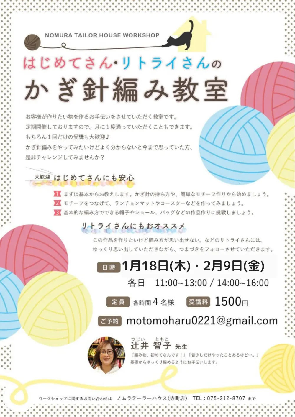 1月・2月ワークショップのお知らせ 寺町店 2023/12/25 こんにちはノムラテーラーハウスです♪ 1月と2月のワークショップのご案内です。 寺町店では様々なワークショップを毎月開催しています! 寺町店は商店街のアーケードの中にあるので、お店にもお越しいただきやすいです◎ 講習は少人数で行われ、やさしい先生たちが丁寧に教えてくださいますので、少しでもご興味がある方はぜひお気軽にお問合せ下さいませ✨ ※ご予約は各ワークショップのご連絡先にて承っております! <お正月ハギレセールのお知らせ 🎍 お正月ハギレセール 🎍> カテゴリ すべて オンラインショップ 四条本店 寺町店 そのほか 一覧に戻る