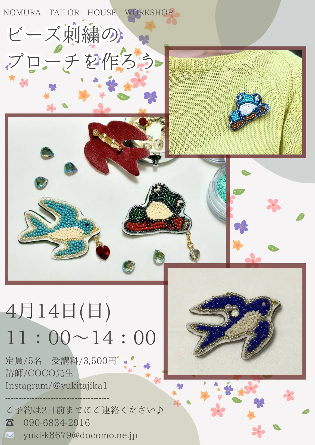 ↑こちらの「ビーズ刺繍のブローチを作ろう」ワークショップの日程が1日追加になりました。
