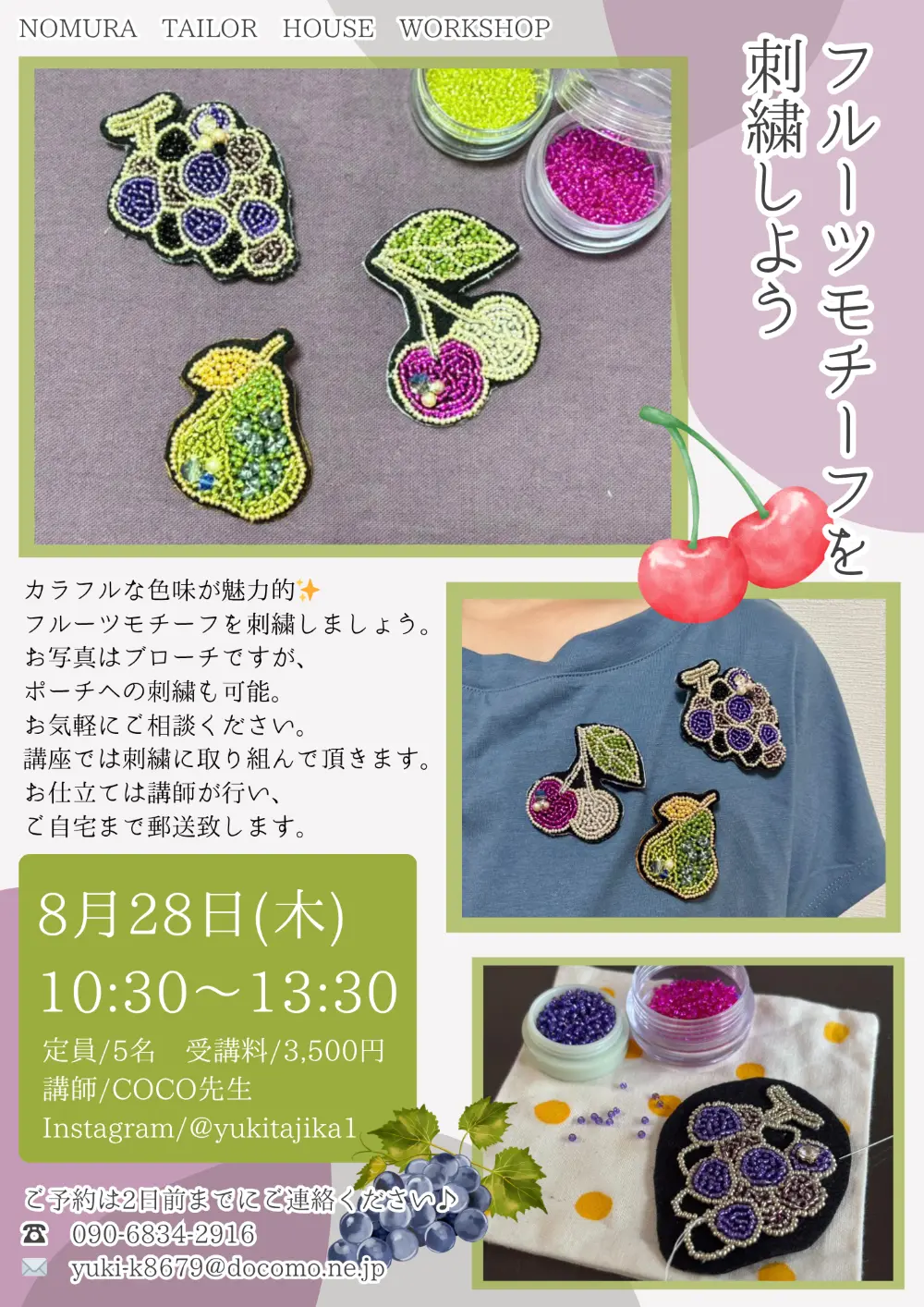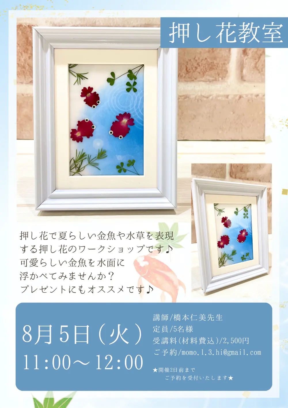 2025年8月・9月のワークショップのご案内です。