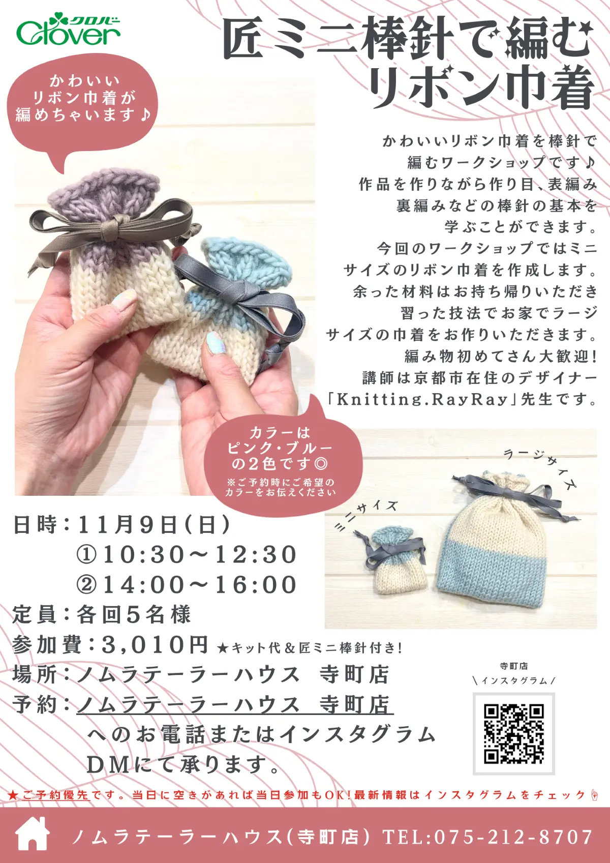 クロバーさんとの編み物コラボワークショップを開催します♪