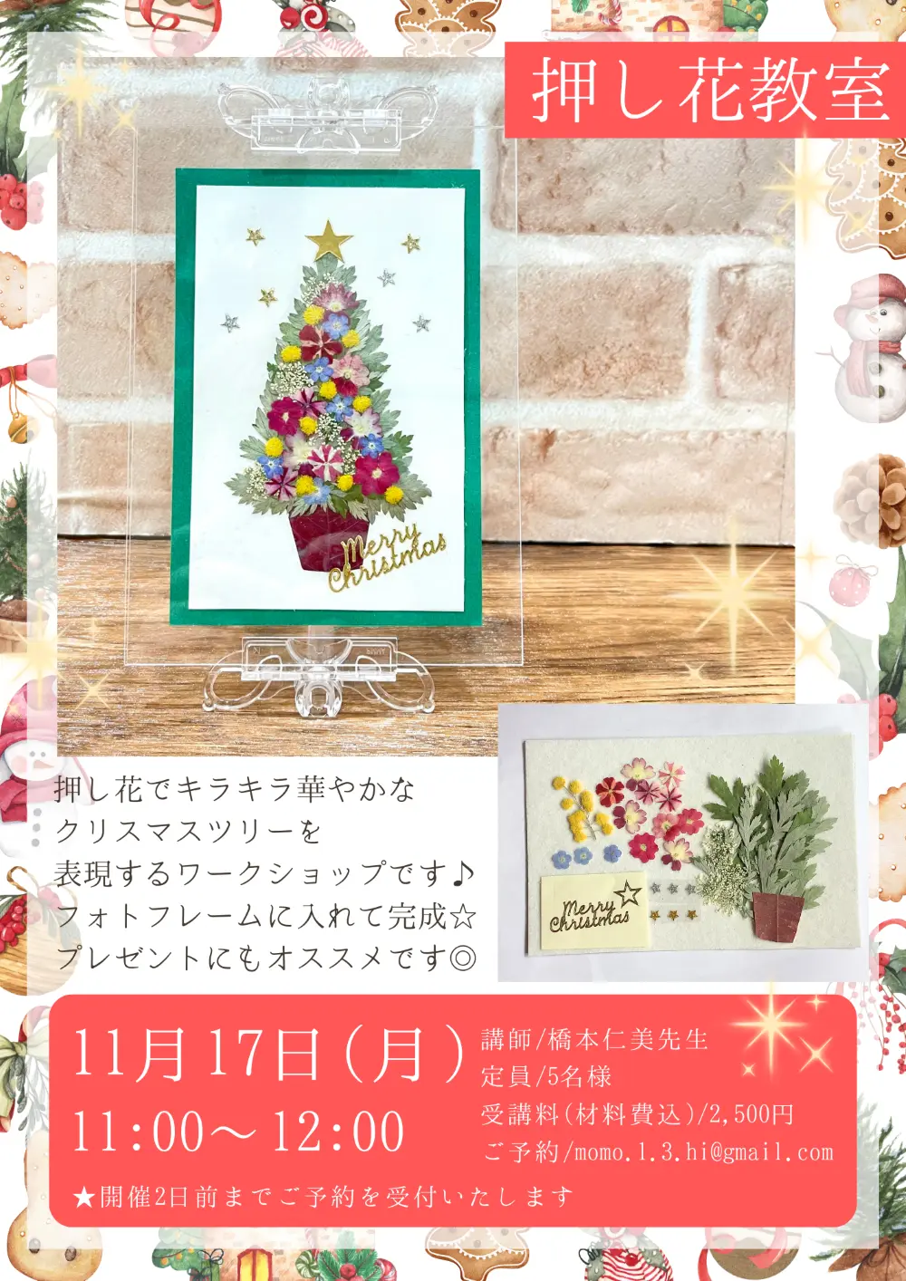 【お知らせ】 《押し花教室》の曜日が誤って記載されております。 × 11月17日(金) → ⚪︎11月17日(月) お間違えのないようお願いいたします。